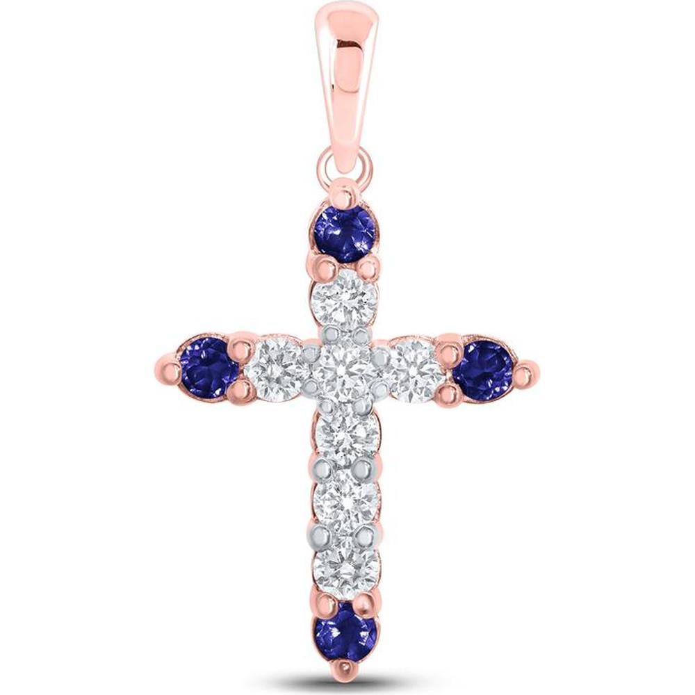 10K Rose Gold Blue Sapphire and Diamond Cross Pendant - 1/4 Carat Total Gem Weight
