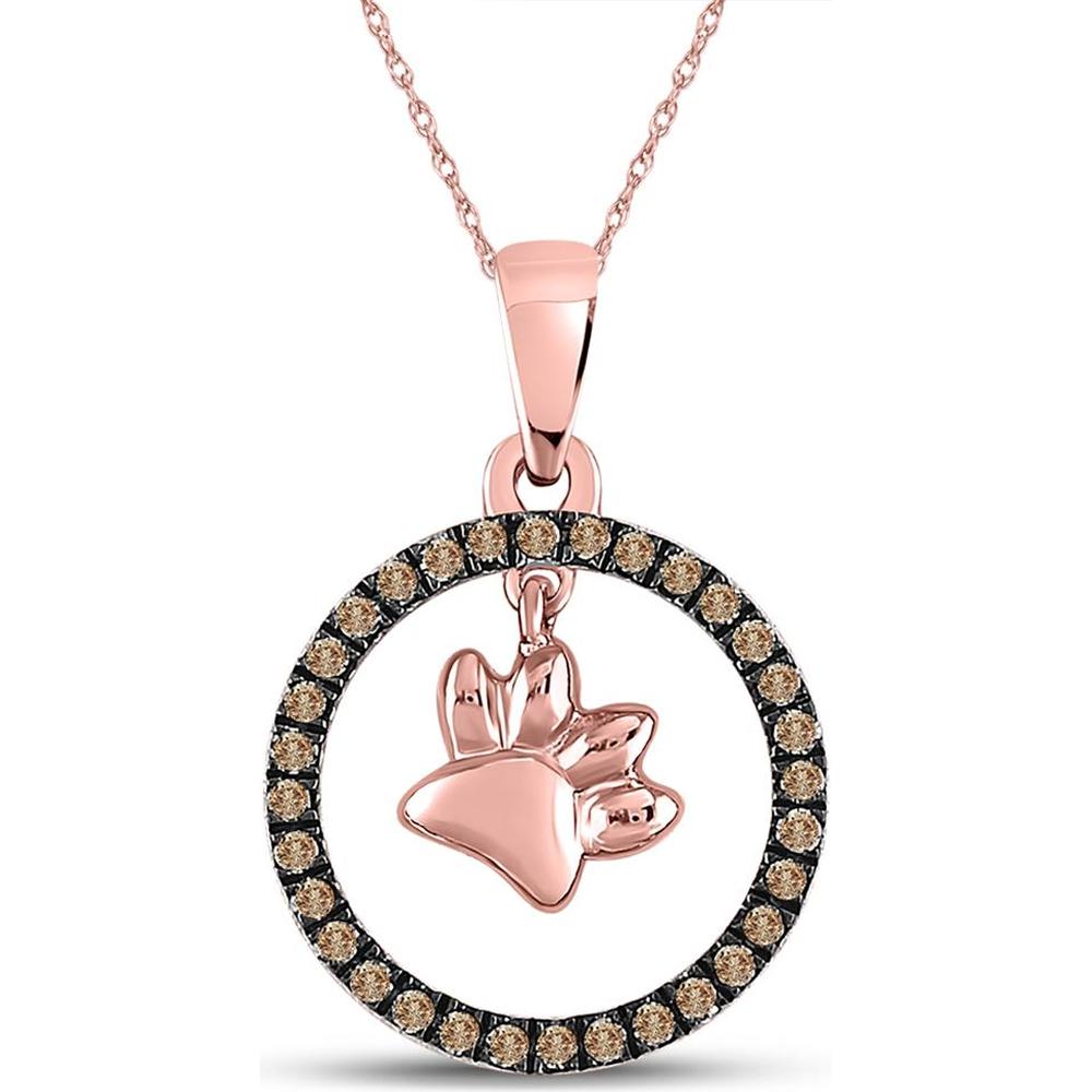 10K Rose Gold Circle Pendant with Prong-Set Round Brown Diamonds and Dog Paw Charm - 0.20 Carat Total Diamond Weight