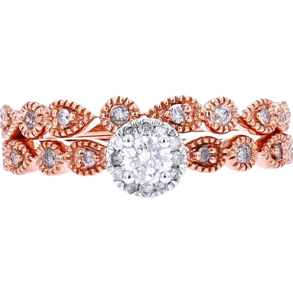 10K Rose Gold Diamond Bridal Set with 0.33 Carat Total Diamond Weight