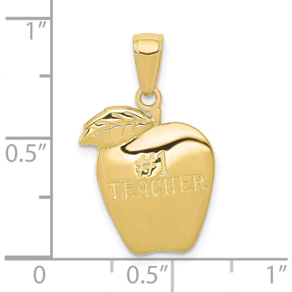 10K Yellow Gold #1 Teacher Apple Pendant - Polished Finish, 22mm Length, 14mm Width by Oro Pregiato