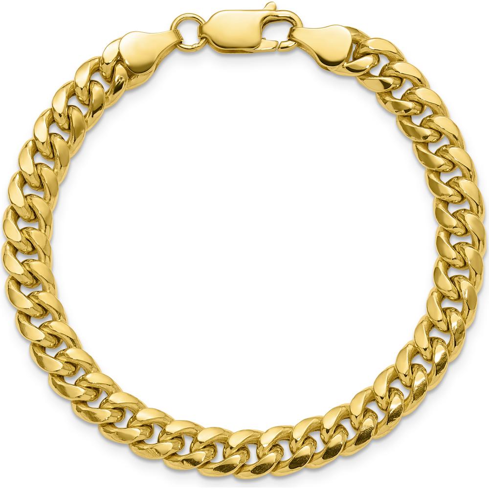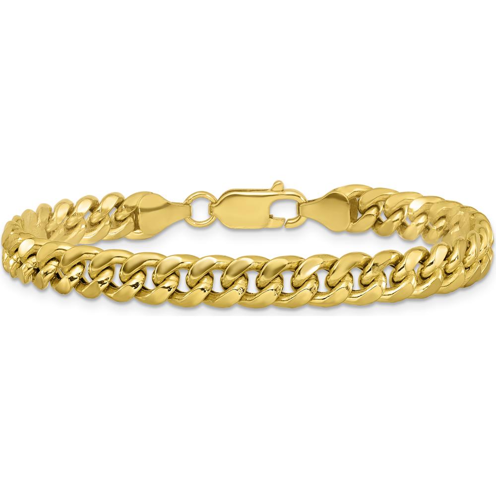 10K Yellow Gold 8" Semi-Solid Miami Cuban Chain Bracelet - 6.75mm Width by Oro Pregiato