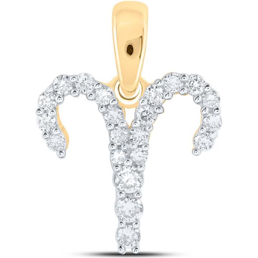 10K Yellow Gold Aries Zodiac Pendant with Round Prong-Set Diamonds - 1/4 Carat Total Diamond Weight