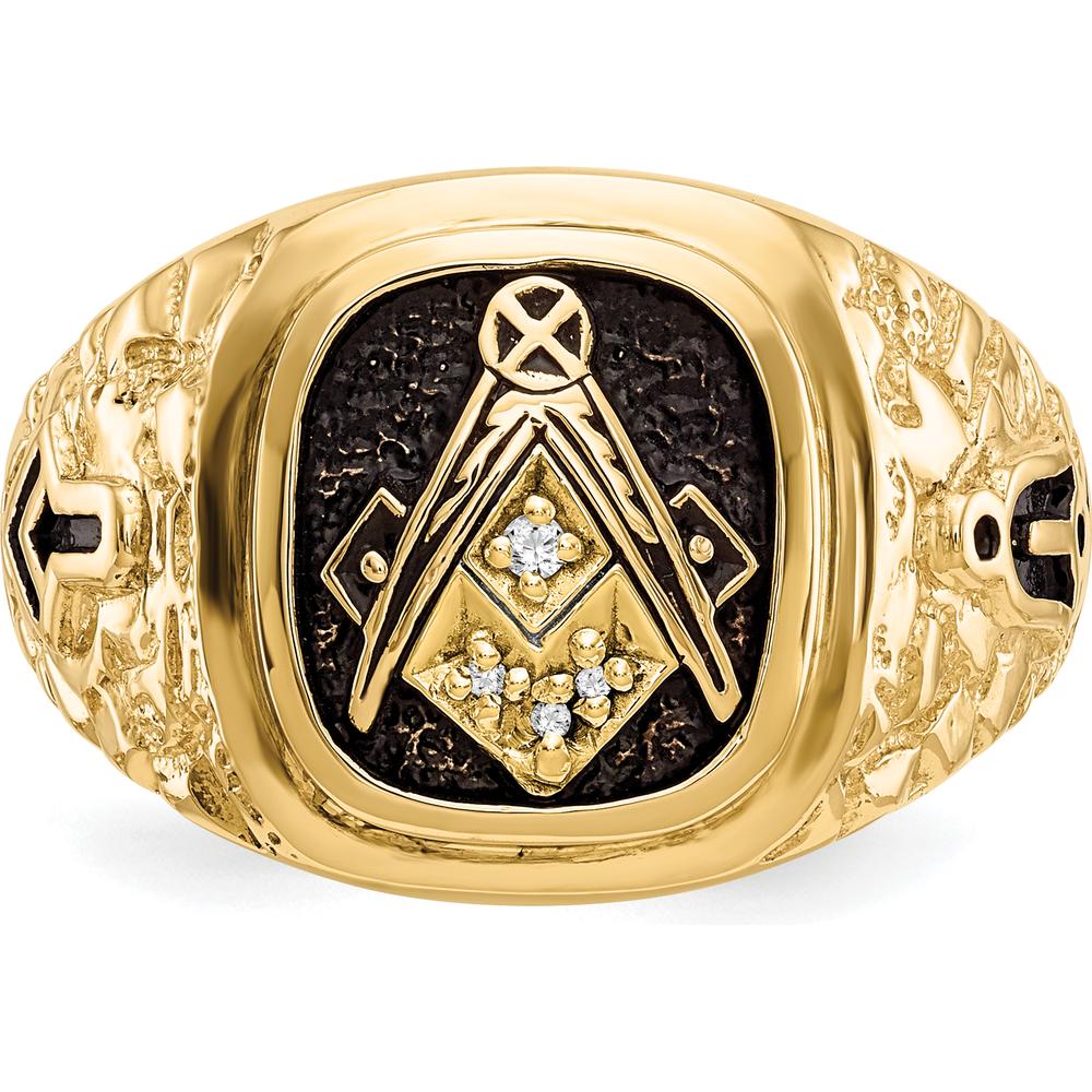 10K Yellow Gold Men's Polished and Antiqued Masonic Ring with Round Diamonds - 0.04 Carat Total Diamond Weight by IBGoodman