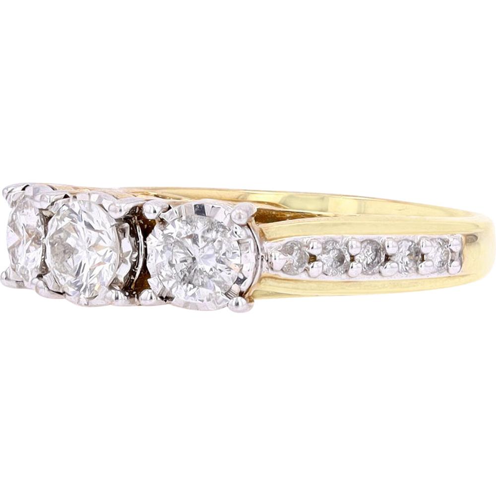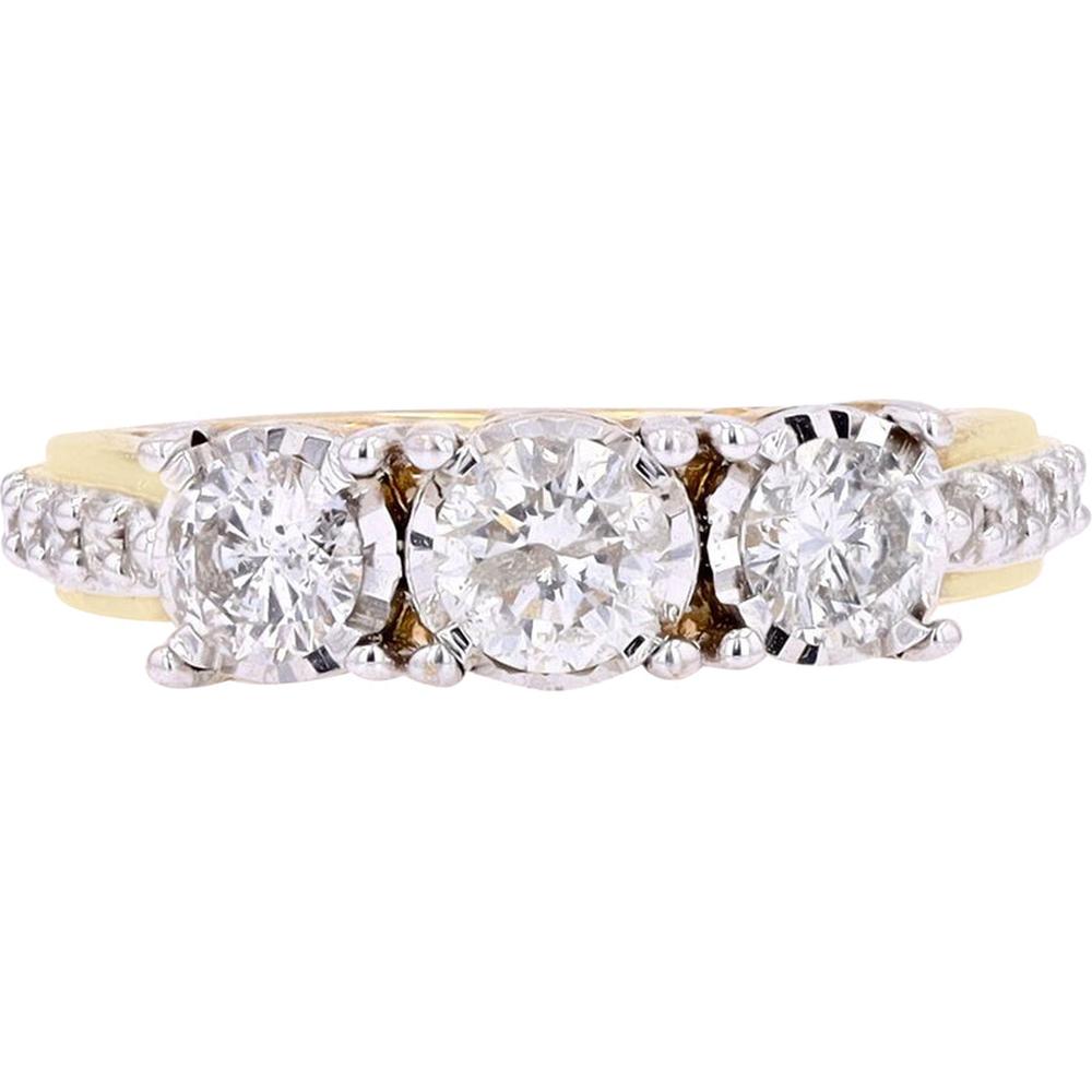 10K Yellow Gold Three Stone Diamond Ring - 1.24 Carats Total Diamond Weight