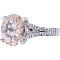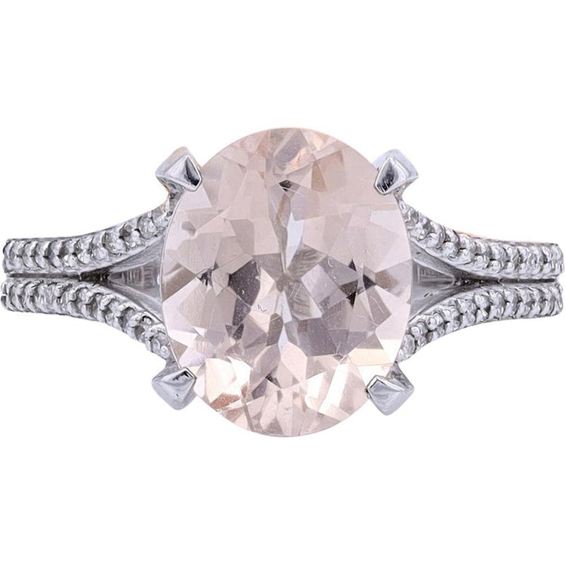 14K Effortless Elegance Morganite Center Ring - 3.20 Carat Main Stone, 0.33 Carat Diamonds, 14K White Gold