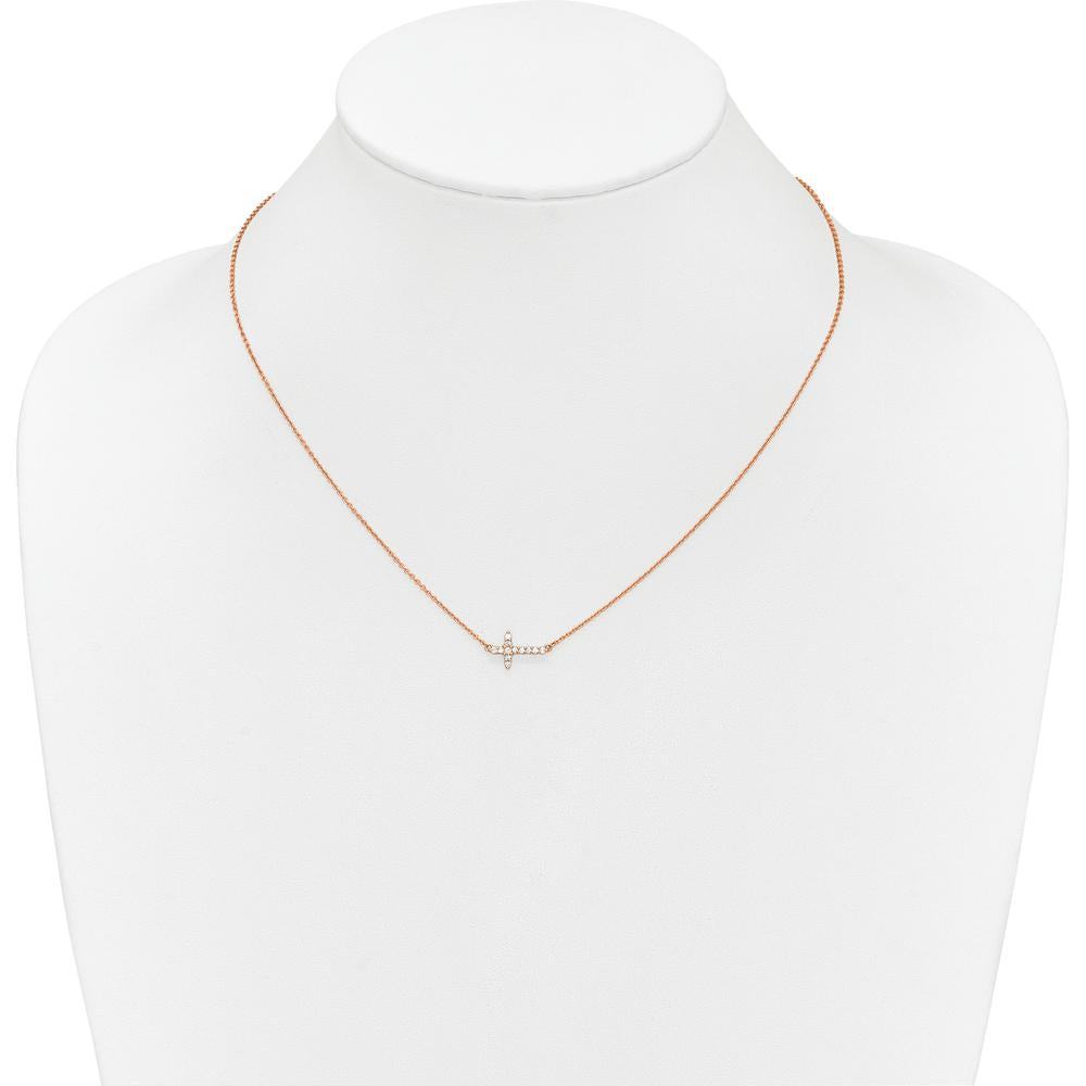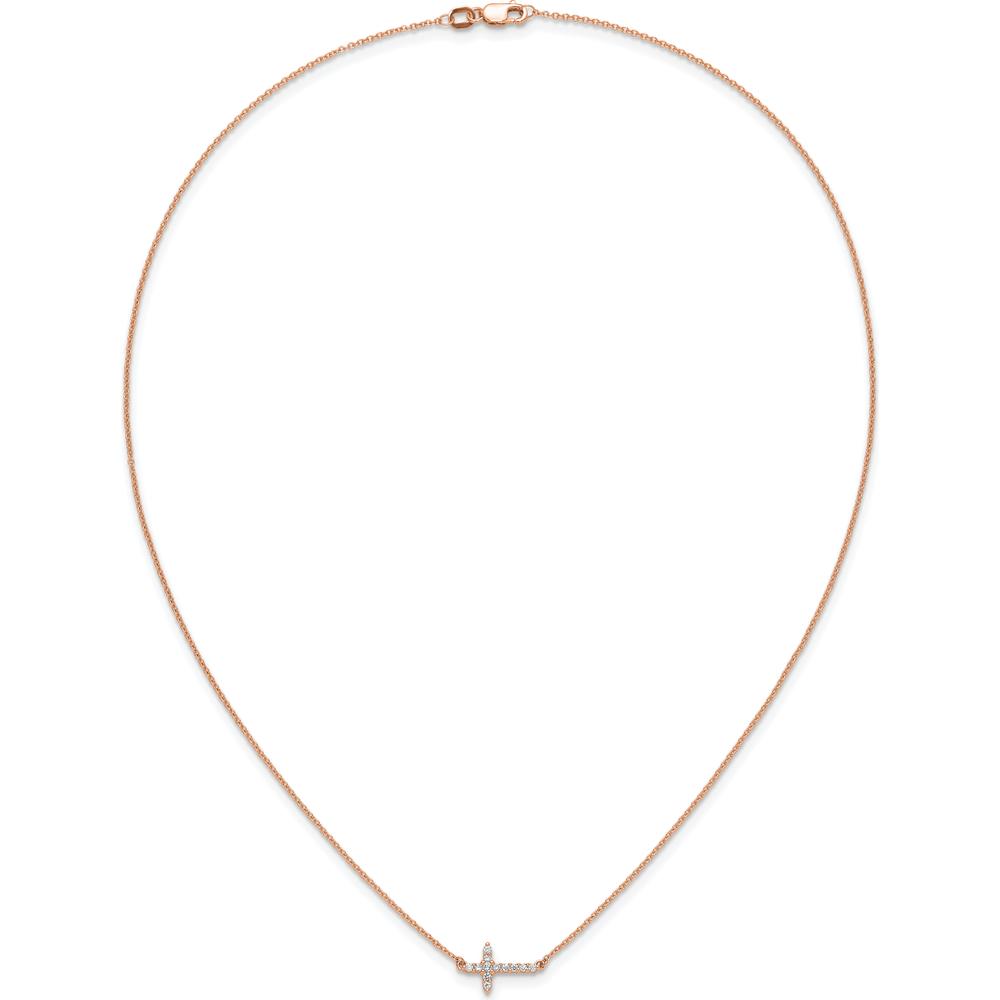 14K Rose Gold 1/6 Carat Diamond Sideways Cross Necklace - 1/6 Carat Total Diamond Weight by Oro Pregiato