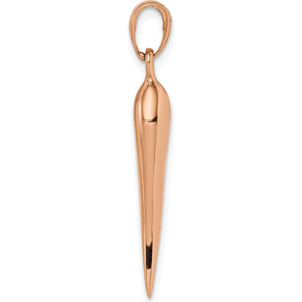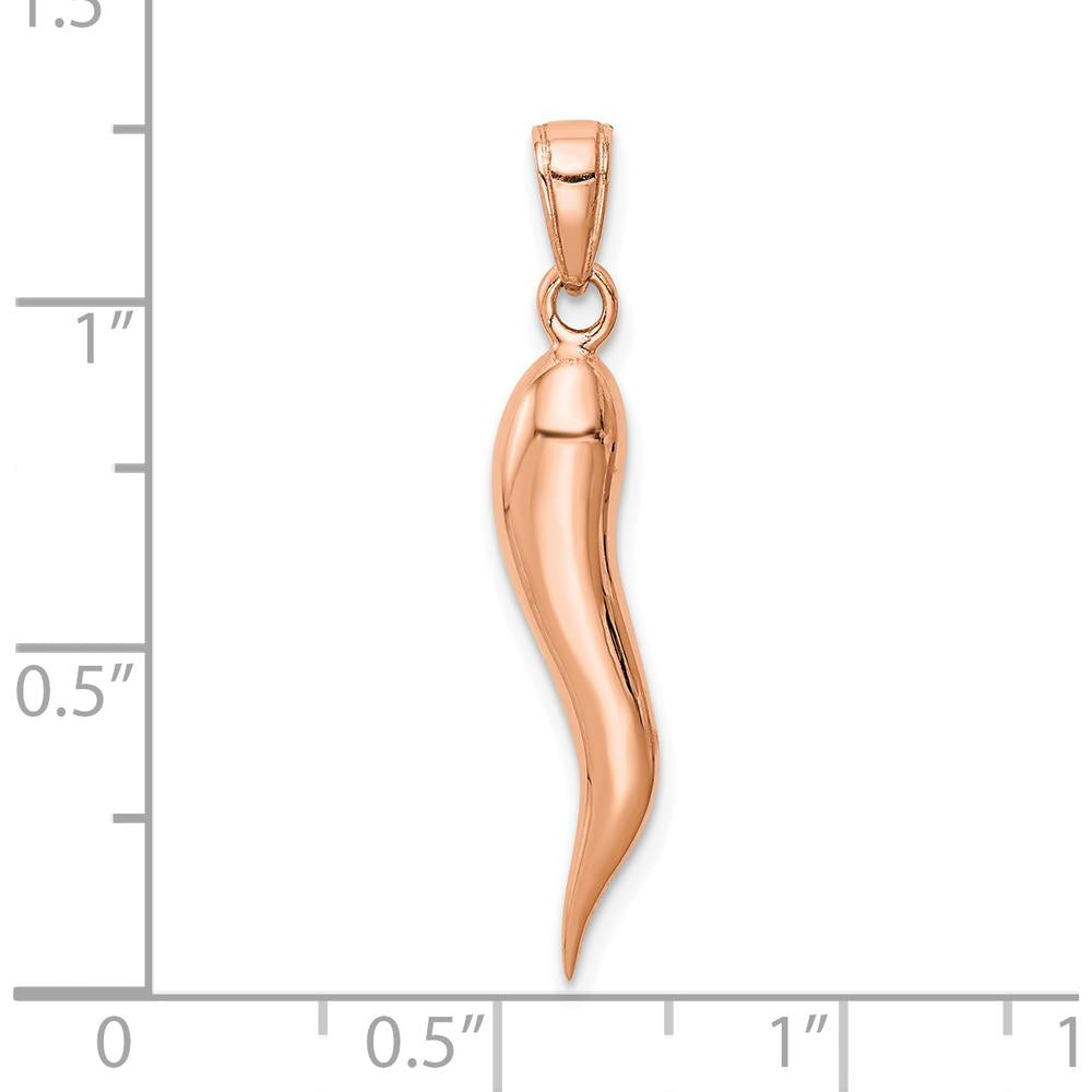 14K Rose Gold 30mm Large 3D Italian Horn Pendant - Polished Finish by Oro Pregiato