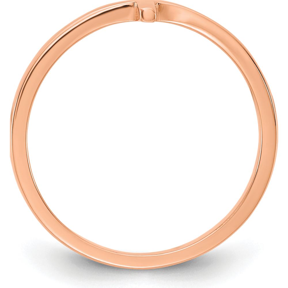 The sleek, smooth band tapers delicately towards the center, where the polished cross gently curves to embrace your finger. With its minimalistic charm, this ring is versatile enough to be worn daily, adding a touch of spiritual sophistication to any outfit. The 14K rose gold adds a warm glow that complements all skin tones, making it the perfect accessory for any occasion.
