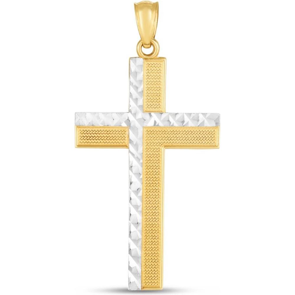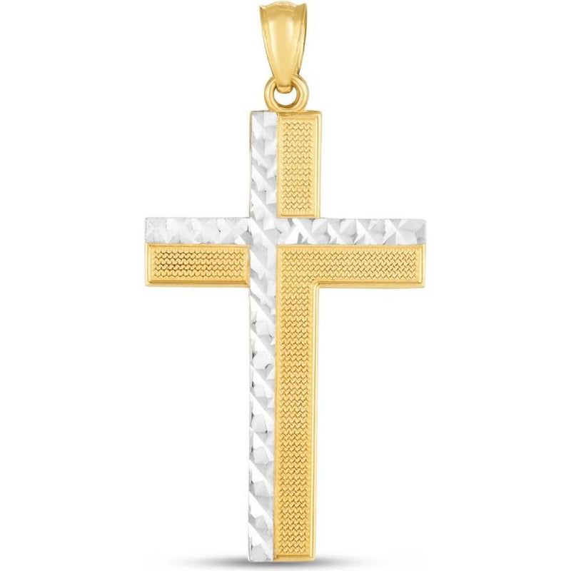 14K Two-Tone Diamond Cut Cross Pendant in Yellow and White Gold - 35mm x 18mm by Orozza Fine Jewelry