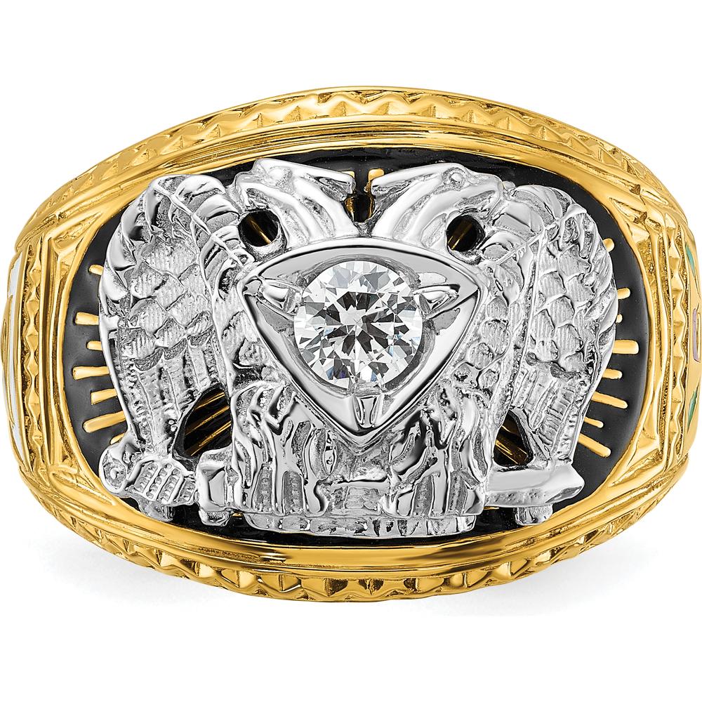 14K Two-Tone Gold Men's Masonic Ring with Diamond Eagle Design by IBGoodman