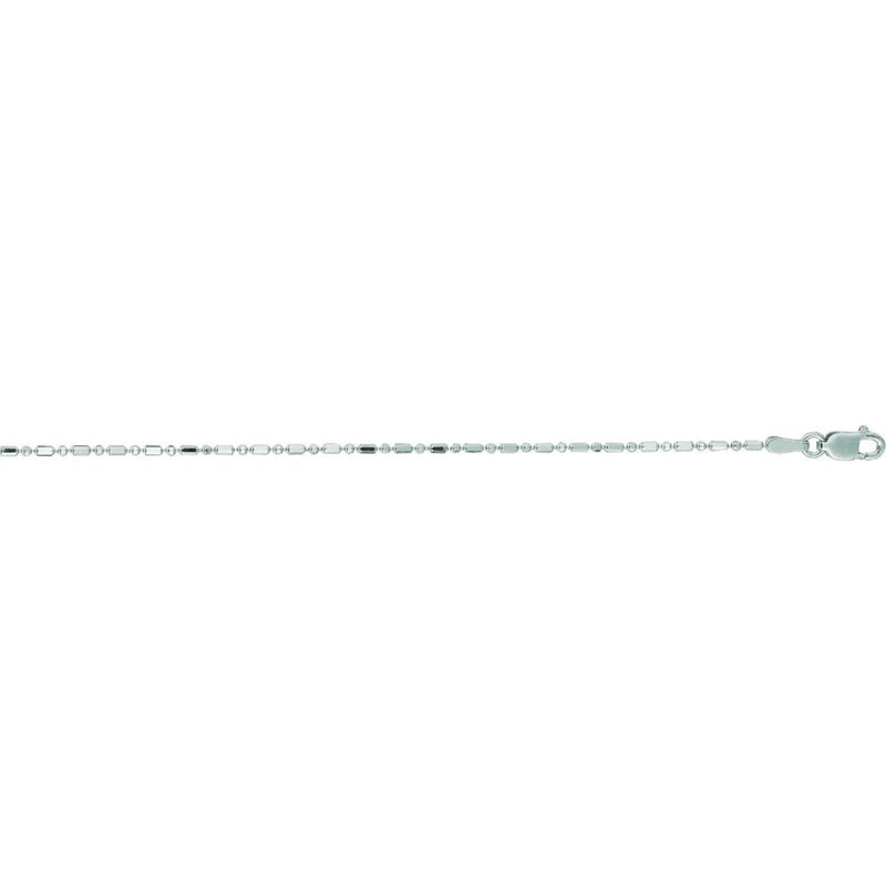 14K White Gold 1.1mm Diamond Cut Bar and Bead Station Chain - 20" by Orozza Fine Jewelry