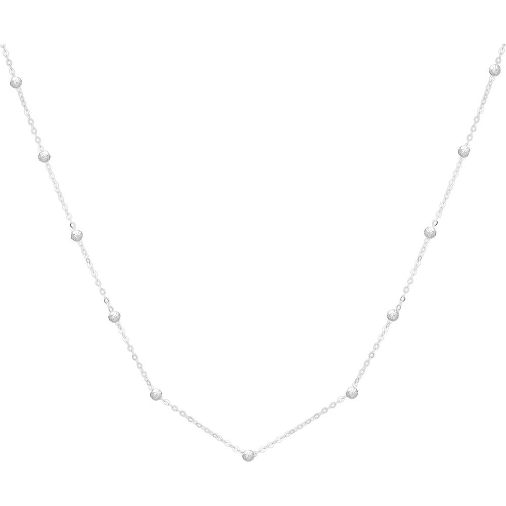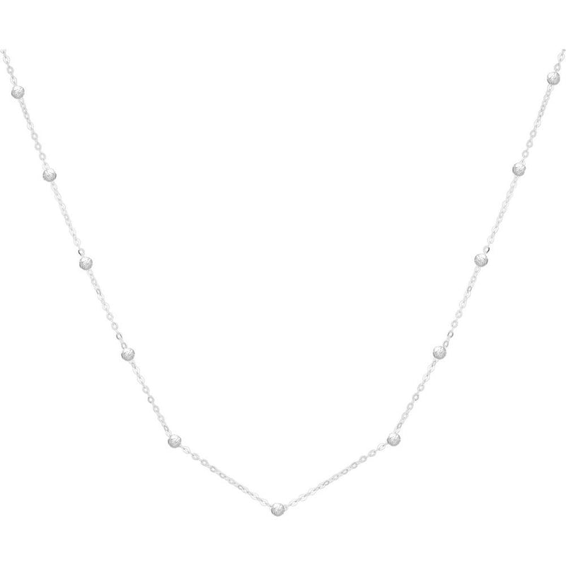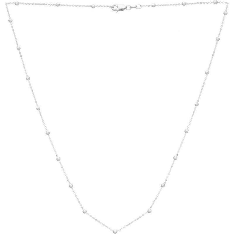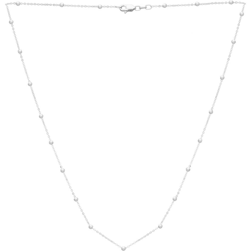 14K White Gold 18" Saturn Bead Chain Necklace with Diamond-Cut Finish by Orozza Fine Jewelry