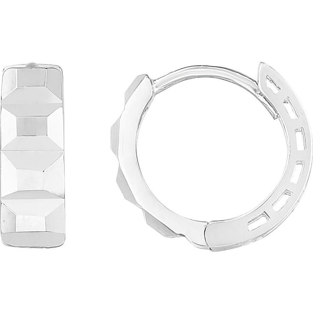 14K White Gold Faceted Huggie Earrings with Diamond-Cut Textured Finish - 12.2 x 11.4mm by Orozza Fine Jewelry