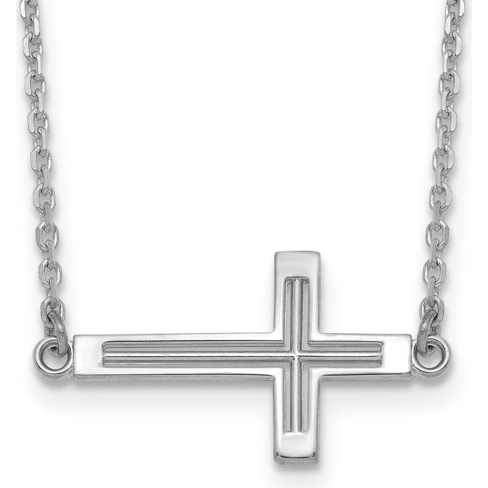 14K White Gold Polished Sideways Cross Pendant Necklace 19" by Oro Pregiato