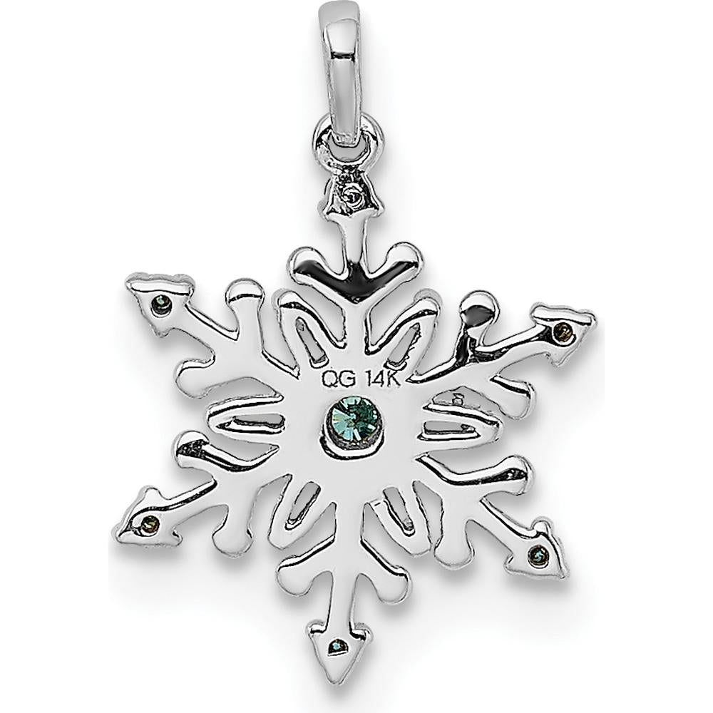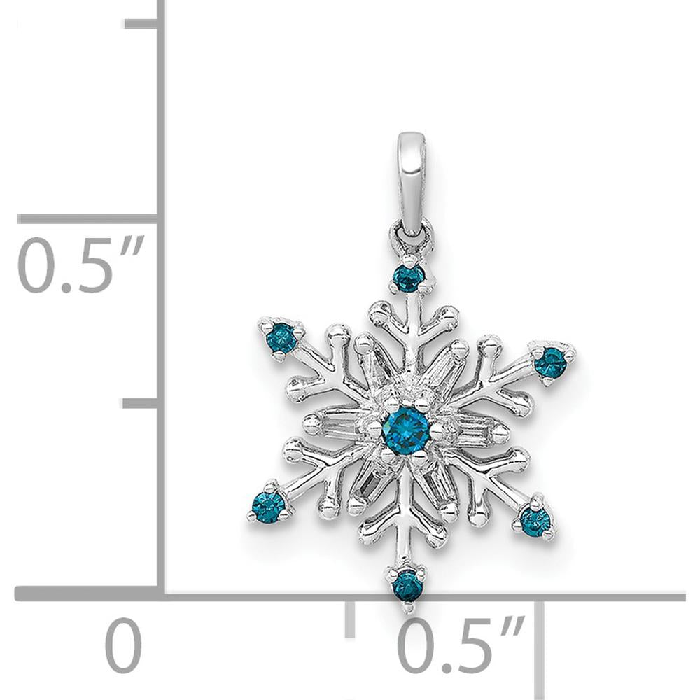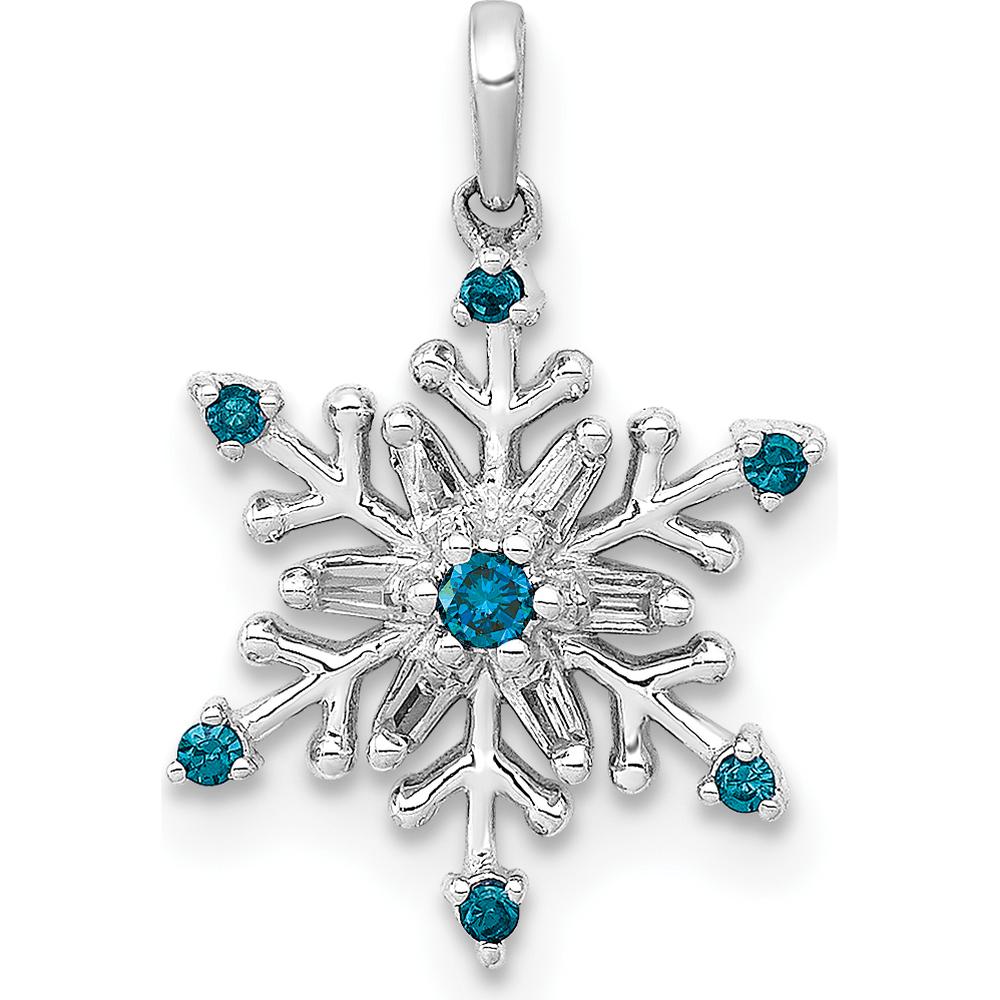 14K White Gold Snowflake Pendant with Blue and White Diamonds - 0.10 Carat Total Diamond Weight by Monteluci Fine Jewelry