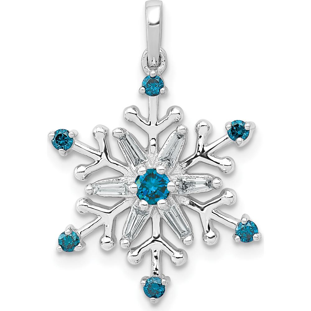 14K White Gold Snowflake Pendant with Round and Baguette Blue and White Diamonds - 0.13 Carat Total Diamond Weight by Monteluci Fine Jewelry
