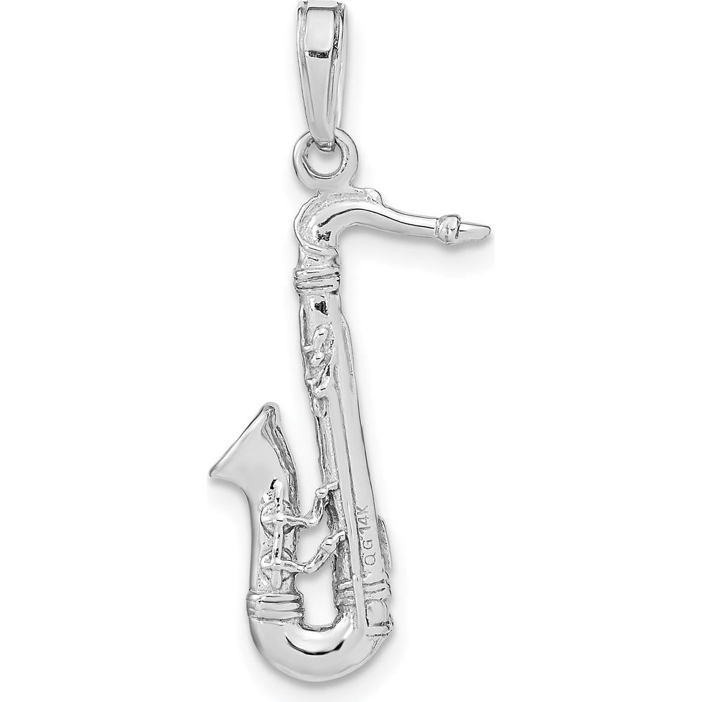 14K White Gold Solid Polished 3D Saxophone Charm - 22mm Length by Oro Pregiato