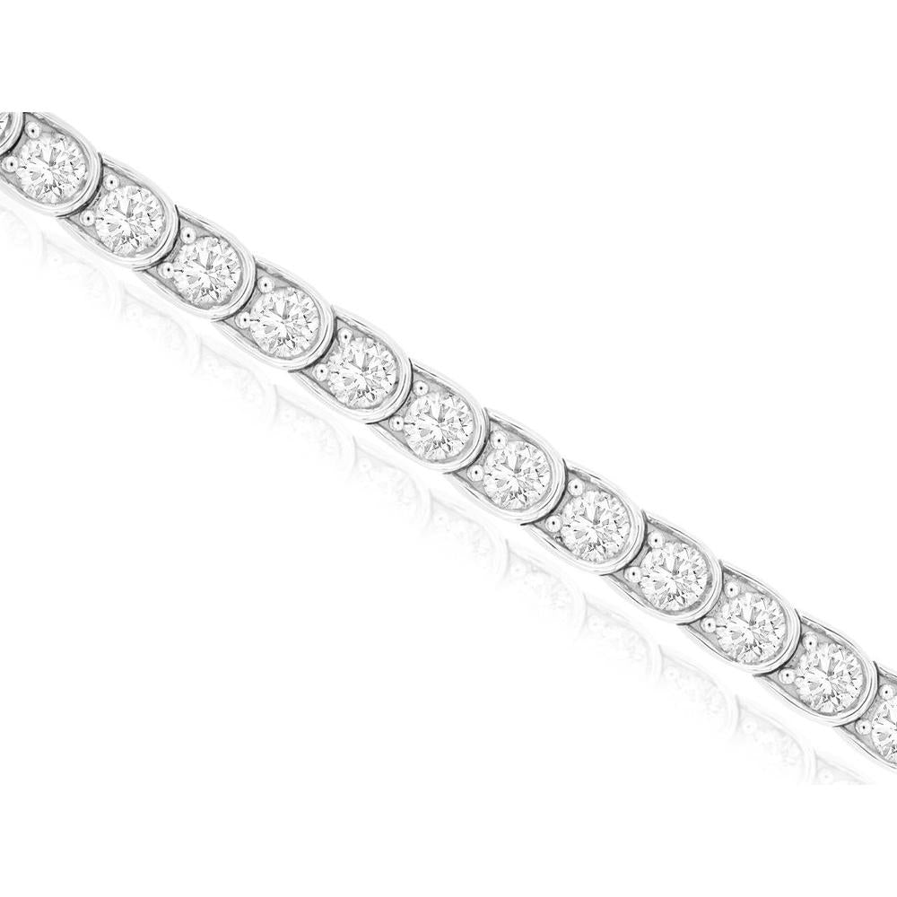 A bracelet that speaks to timeless elegance, this diamond bracelet is a true reflection of sophistication. Crafted in 14K white gold, each diamond is meticulously set to create an effortlessly luxurious look that complements any outfit, whether for an evening out or a cherished moment in daily life. The diamonds, totaling 5 carats in weight, are set in a classic line design, ensuring that each stone receives its moment in the spotlight. The white gold setting adds a luminous backdrop, enhancing the natural sparkle of the diamonds.