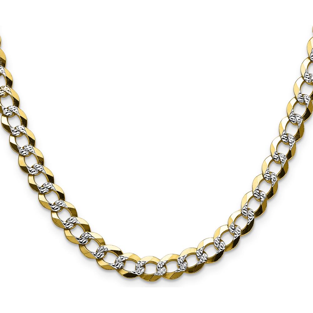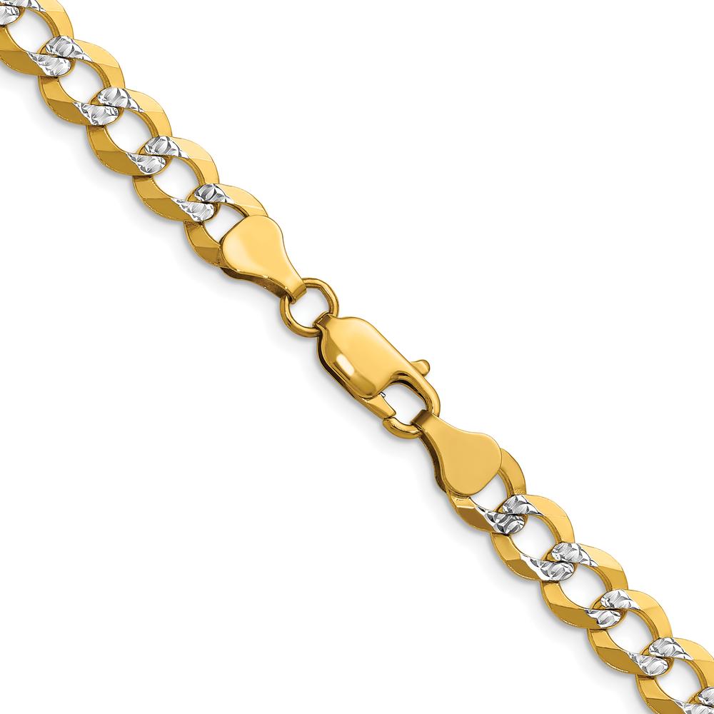 The rich yellow gold radiates a warmth that enhances the contemporary flat Cuban shape, perfectly balanced with the crisp contrast of rhodium accents. Measuring 16 inches in length, it sits gracefully along the neckline, with a width that feels both powerful and elegant. The lobster clasp ensures a secure fit, so you can wear this beauty with confidence, knowing it will stay exactly where it belongs.