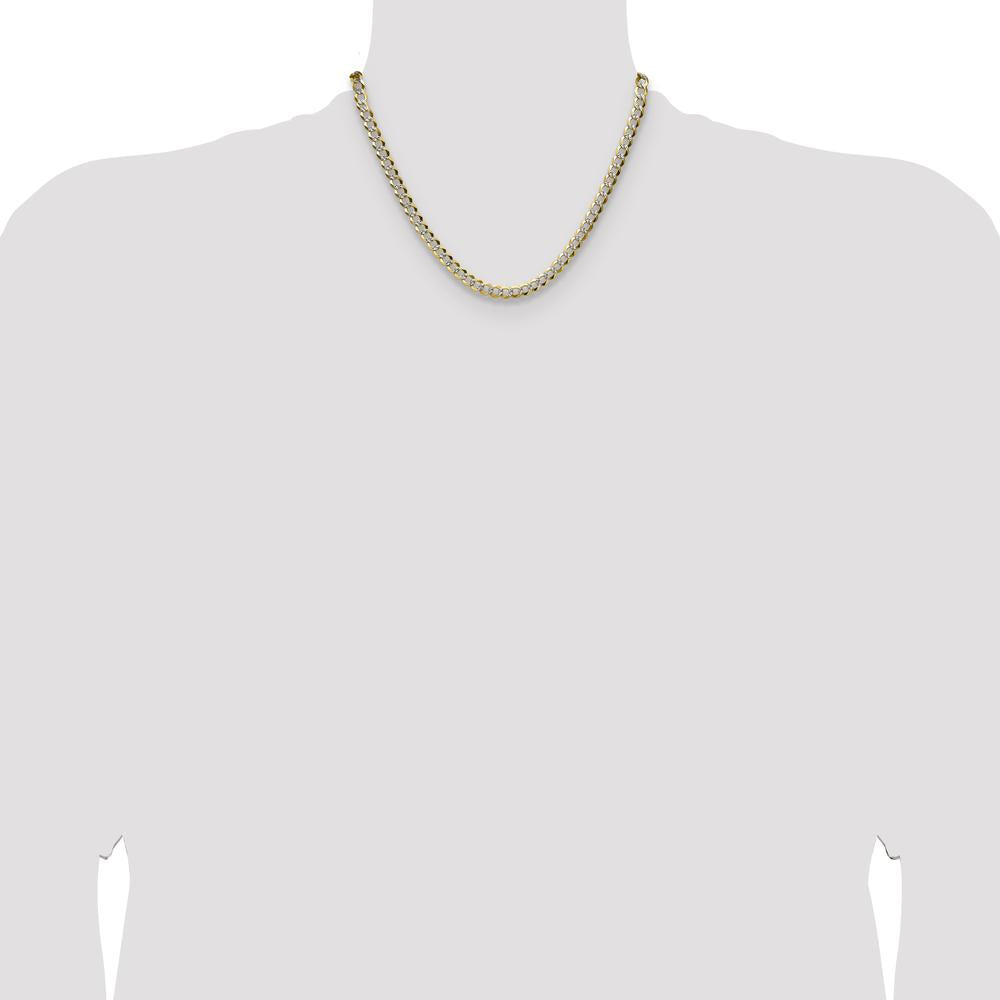 14K Yellow Gold 18" Lightweight Pavé Flat Cuban Chain Necklace with Rhodium Accents by Oro Pregiato