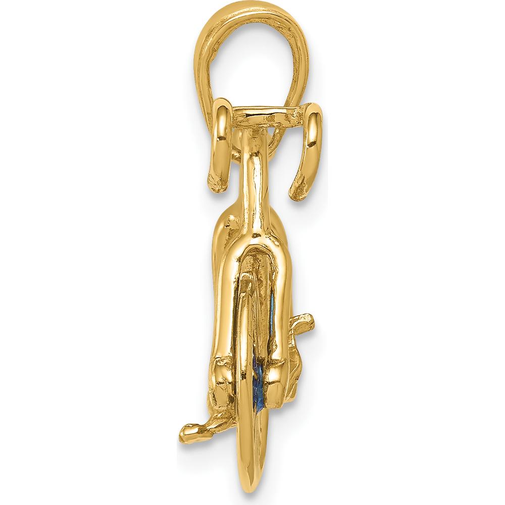 14K Yellow Gold 3D Bicycle Pendant with Moveable Wheels and Blue Enamel Accents by Oro Pregiato