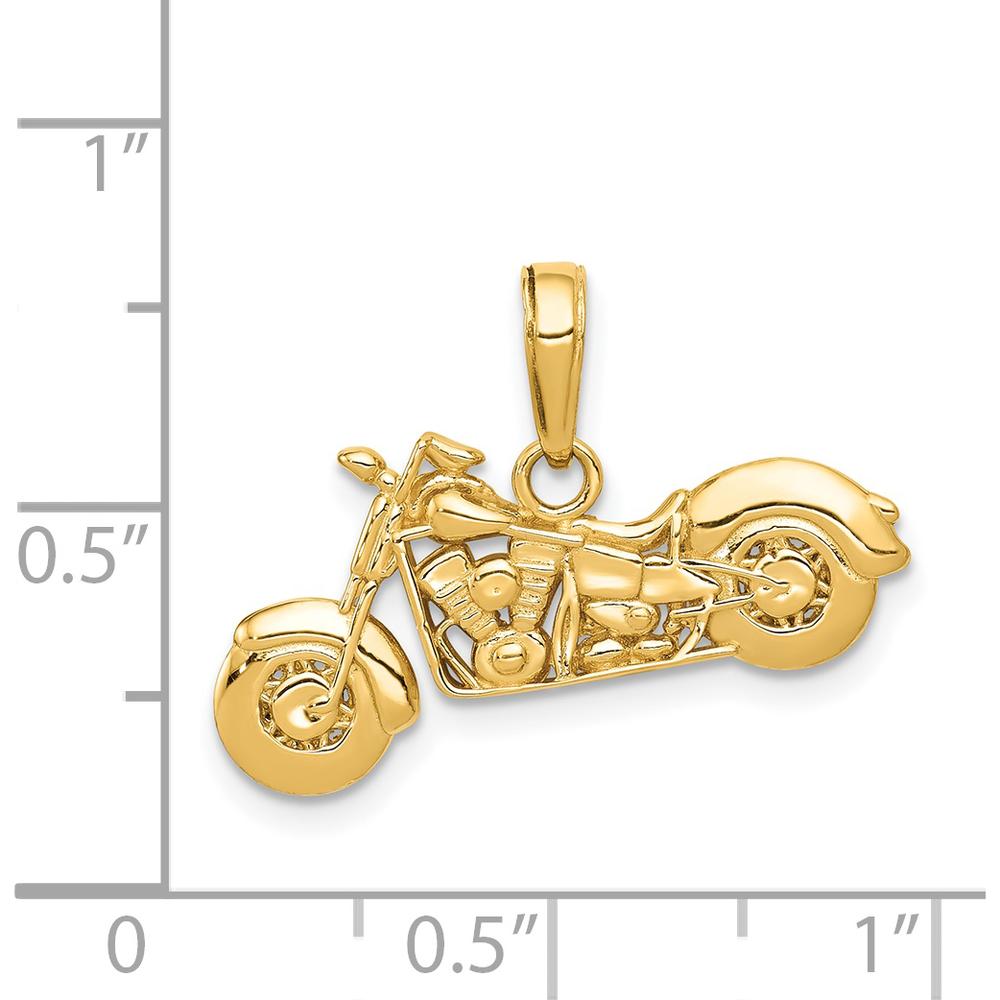 Delicate design, extraordinary presence—this stunning 14K Polished and Textured 3D Motorcycle Pendant is more than just a piece of jewelry. It’s a symbol of freedom, adventure, and the spirit of the open road. Crafted in rich yellow 14K gold, this pendant boasts a brilliant polished finish that catches the light with every angle, while intricate textured details bring the motorcycle to life in 3D form. The expert craftsmanship shines through, with every curve and component of the bike meticulously sculpted to exude boldness and precision.