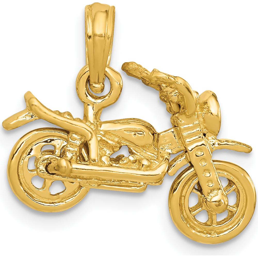 14K Yellow Gold 3D Motorcycle Pendant with Moveable Wheels by Oro Pregiato