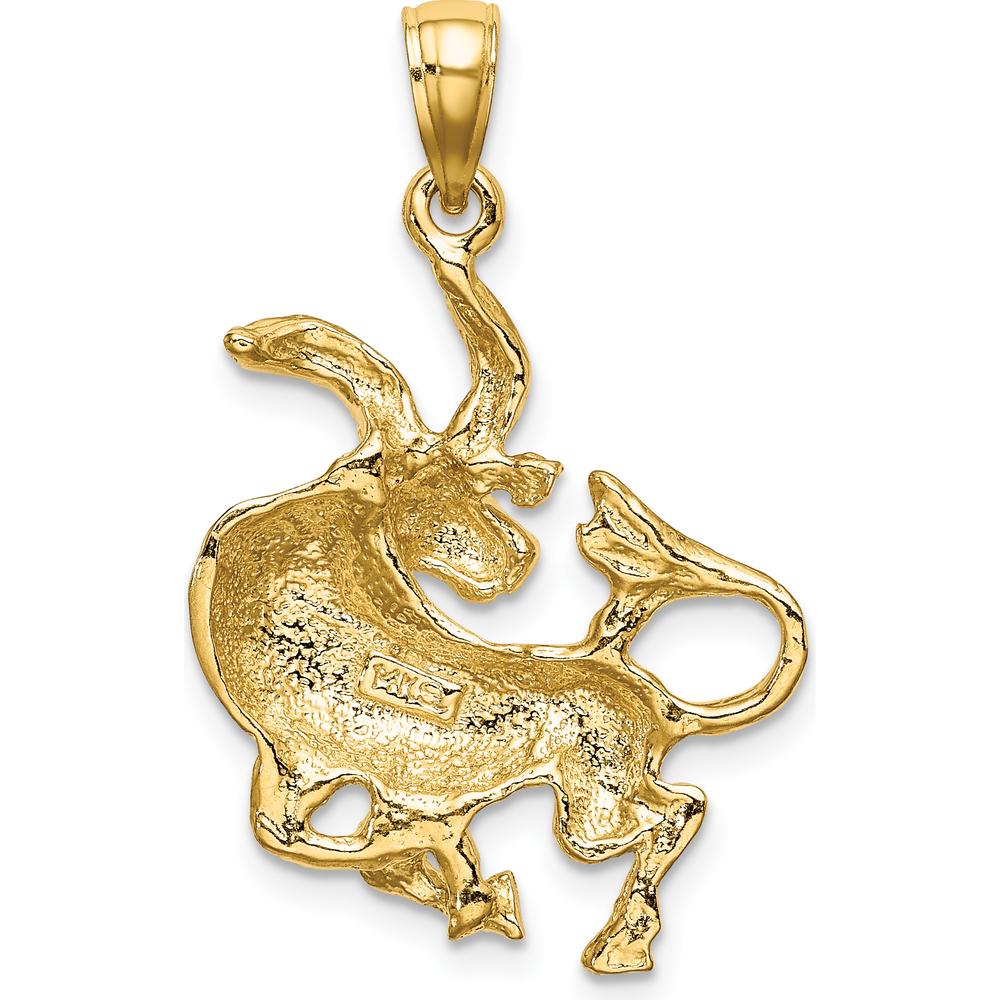 14K Yellow Gold 3D Taurus Zodiac Charm Pendant with Textured Finish - 27.65mm Length by Oro Pregiato