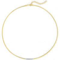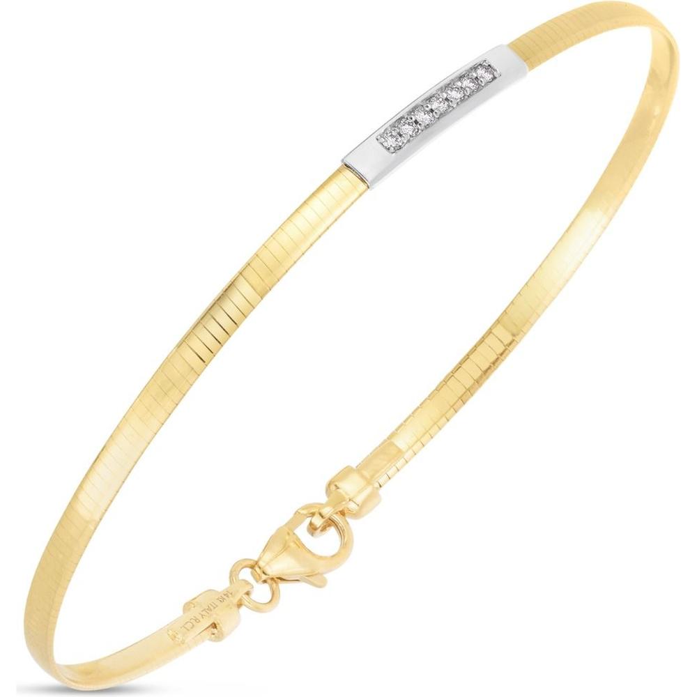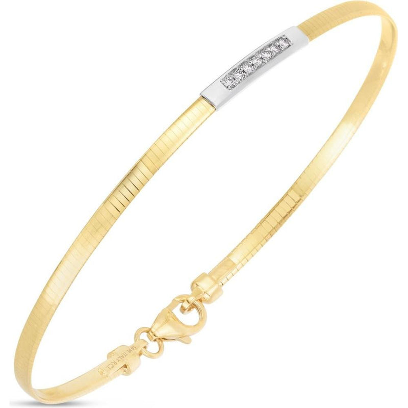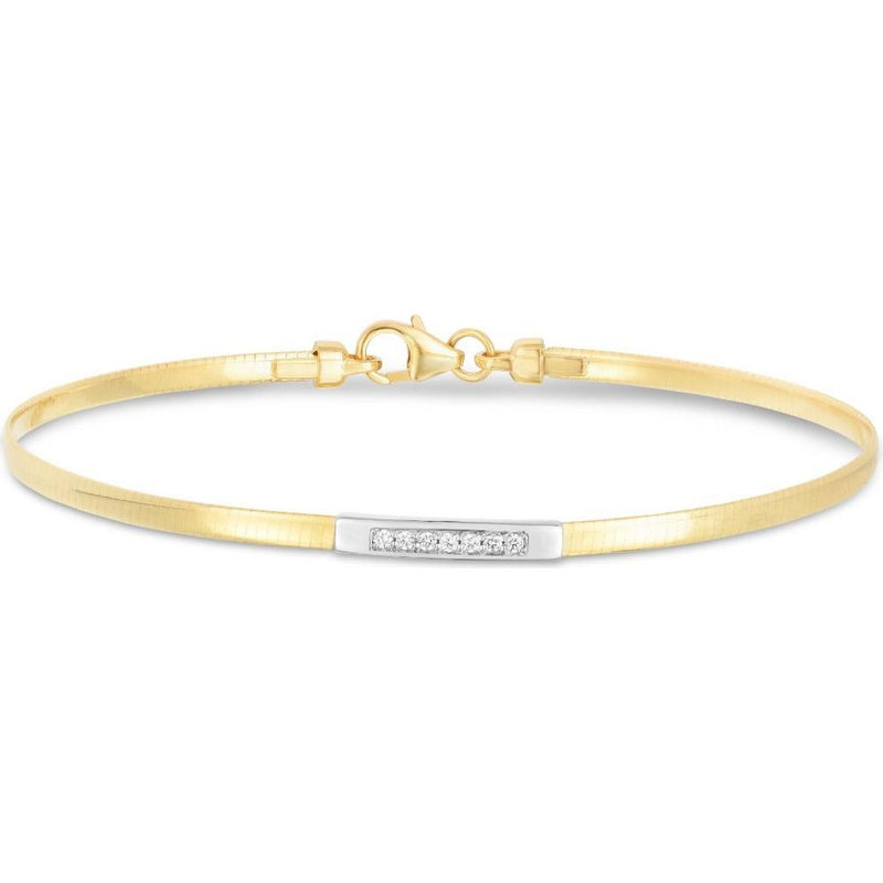 14K Yellow Gold 7" Skinny Omega Bracelet with Diamond Bar - 0.06 Carat Total Diamond Weight by Orozza Fine Jewelry