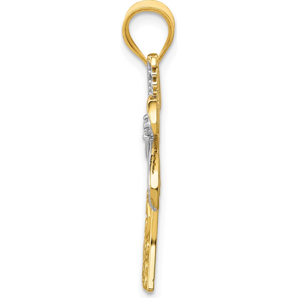 14K Yellow Gold and White Rhodium Diamond Palm Tree Pendant - 0.020 Carat Total Diamond Weight by Oro Pregiato