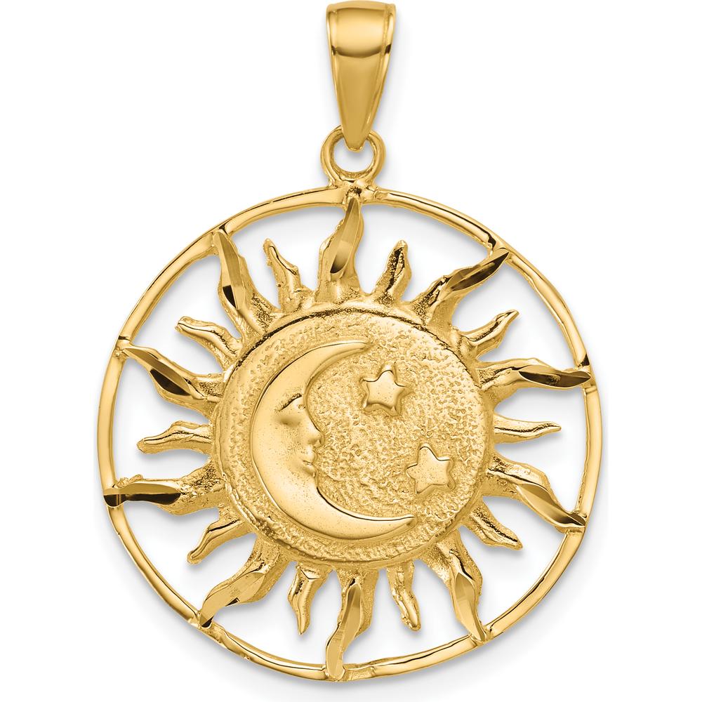 14K Yellow Gold Diamond-Cut Sun and Moon Charm with Stars by Oro Pregiato