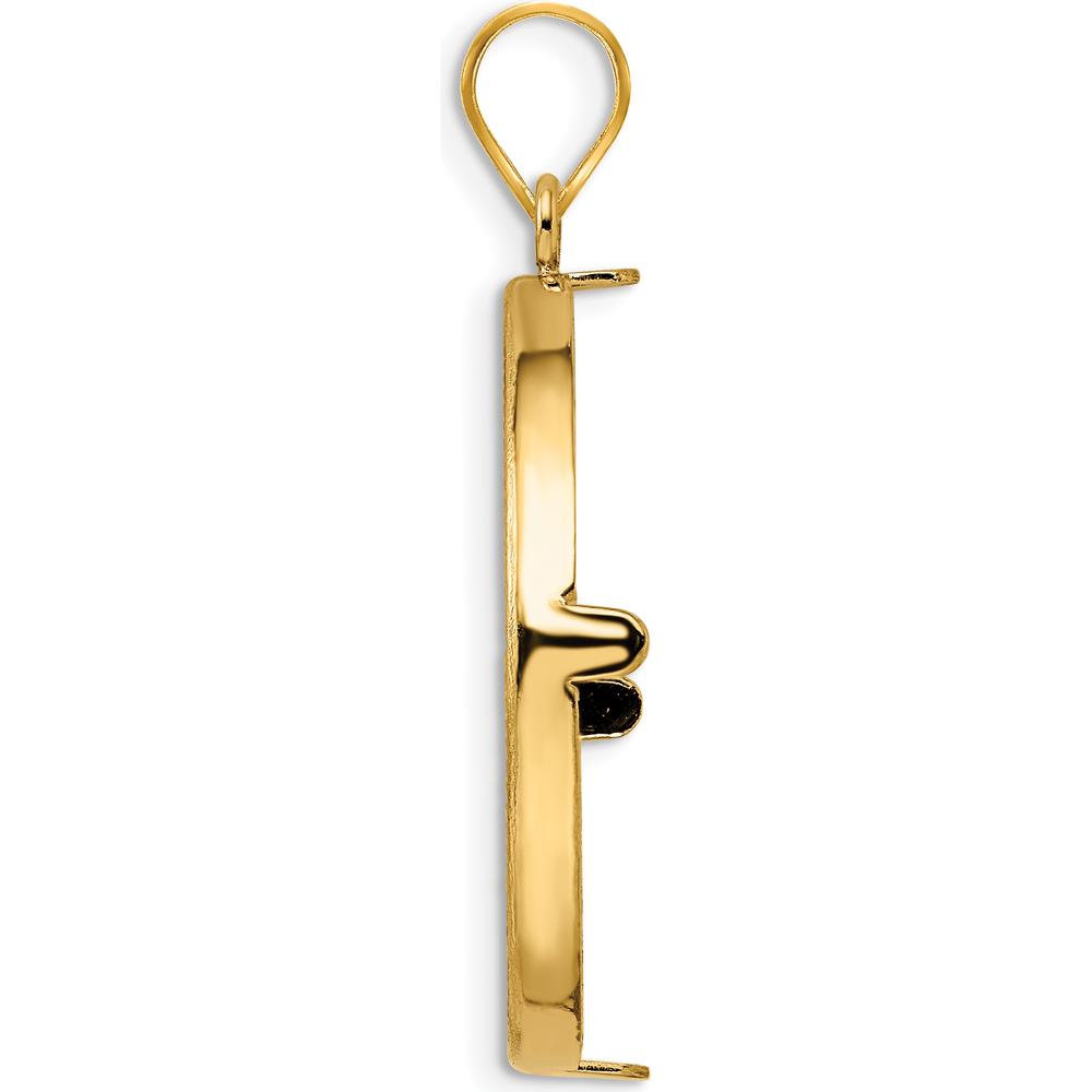 The combination of bold polished gold and the intricacy of diamond-cut details gives this pendant an unforgettable texture and shine. The charming coin bezel is not just a functional mount; it’s a carefully crafted piece of art that draws the eye and sparks curiosity. Whether you’re gifting it to someone special or adding it to your own jewelry collection, it’s a piece that carries both meaning and beauty.