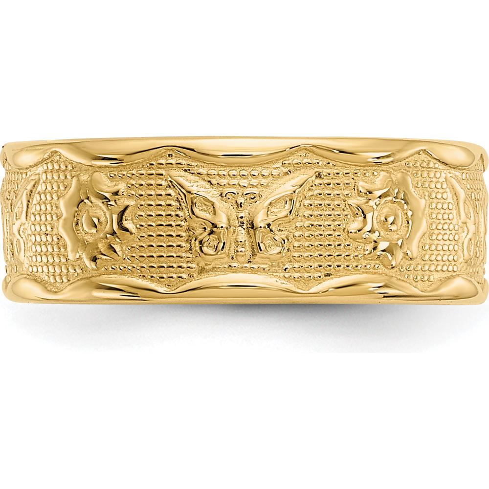 14K Yellow Gold Flower & Butterfly Toe Ring - 5mm Band Width by Oro Pregiato