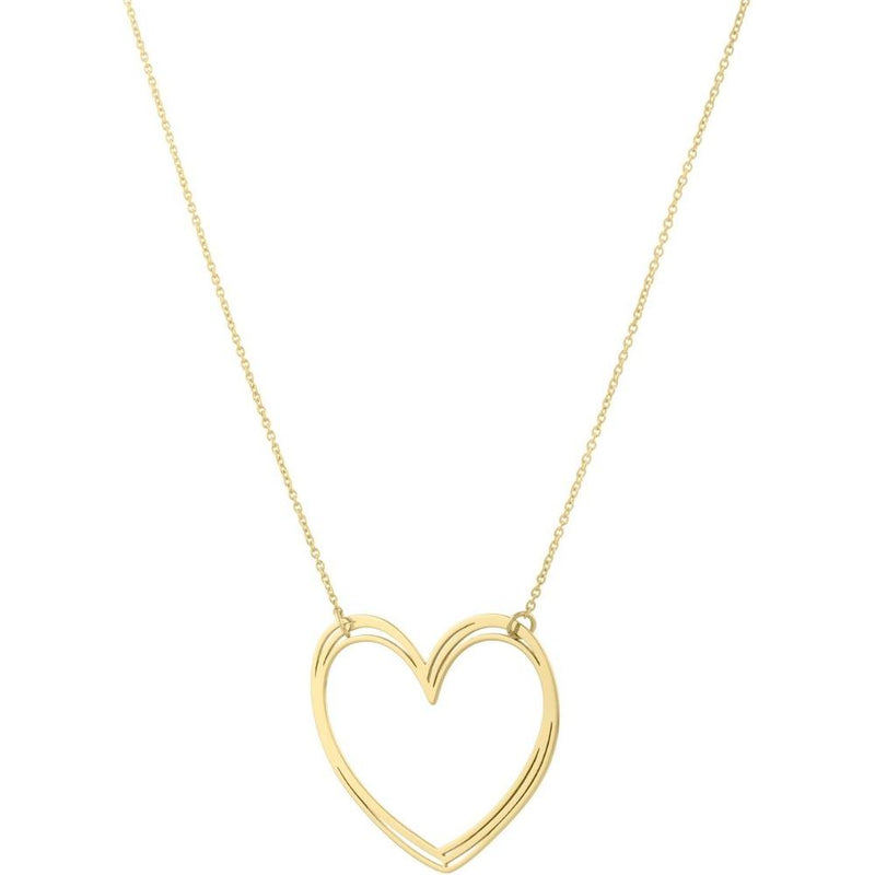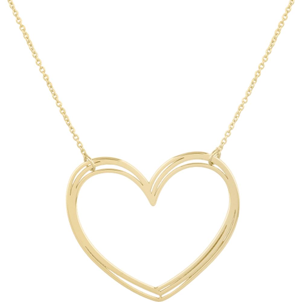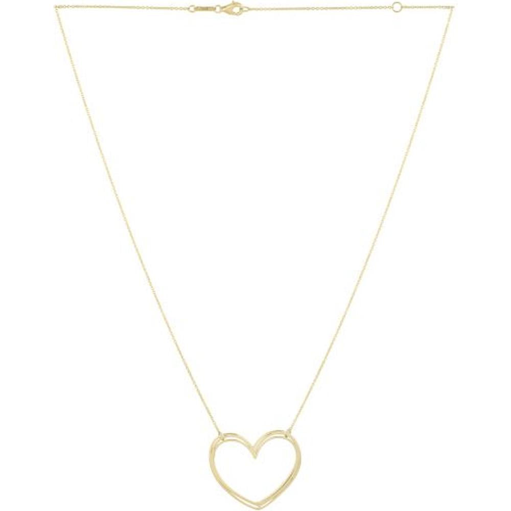 14K Yellow Gold Large Open Heart Necklace with 18" Chain and Pear-Shaped Lobster Clasp by Orozza Fine Jewelry