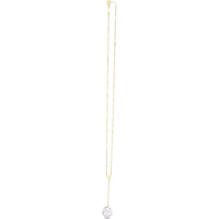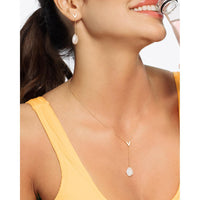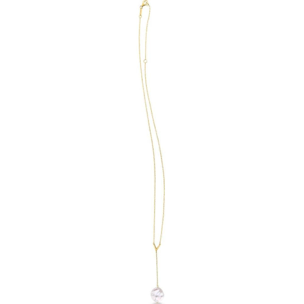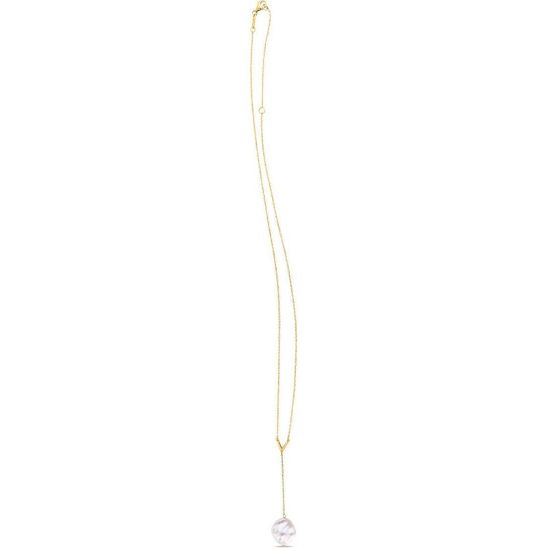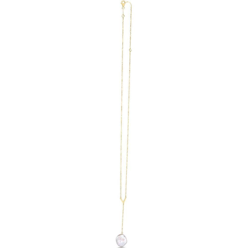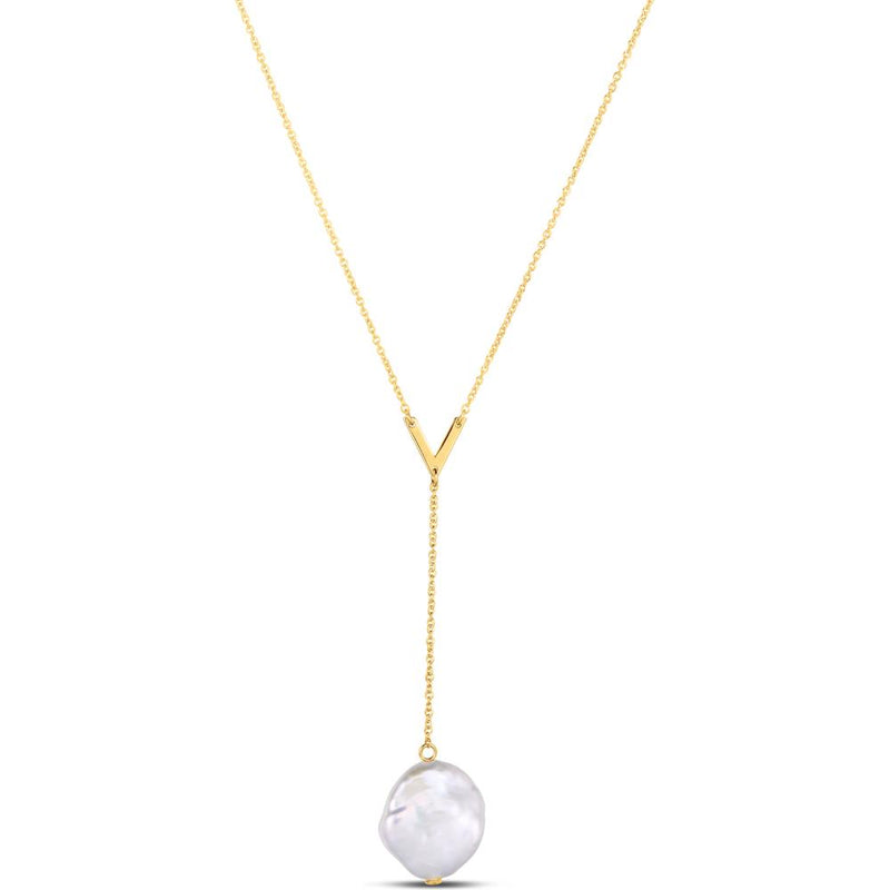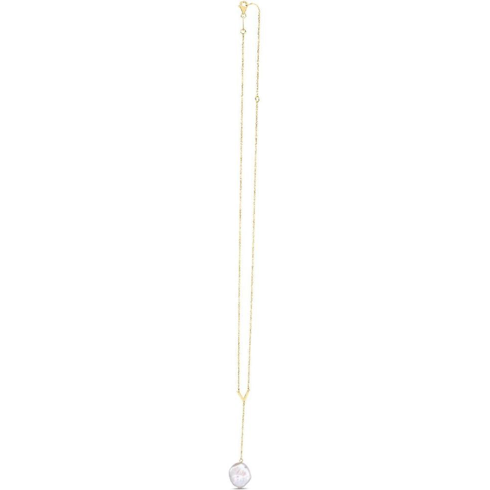14K Yellow Gold Lariat Necklace with Keshi Pearl and Polished V-Shape Accent - Adjustable 18" with 2" Extender by Orozza Fine Jewelry