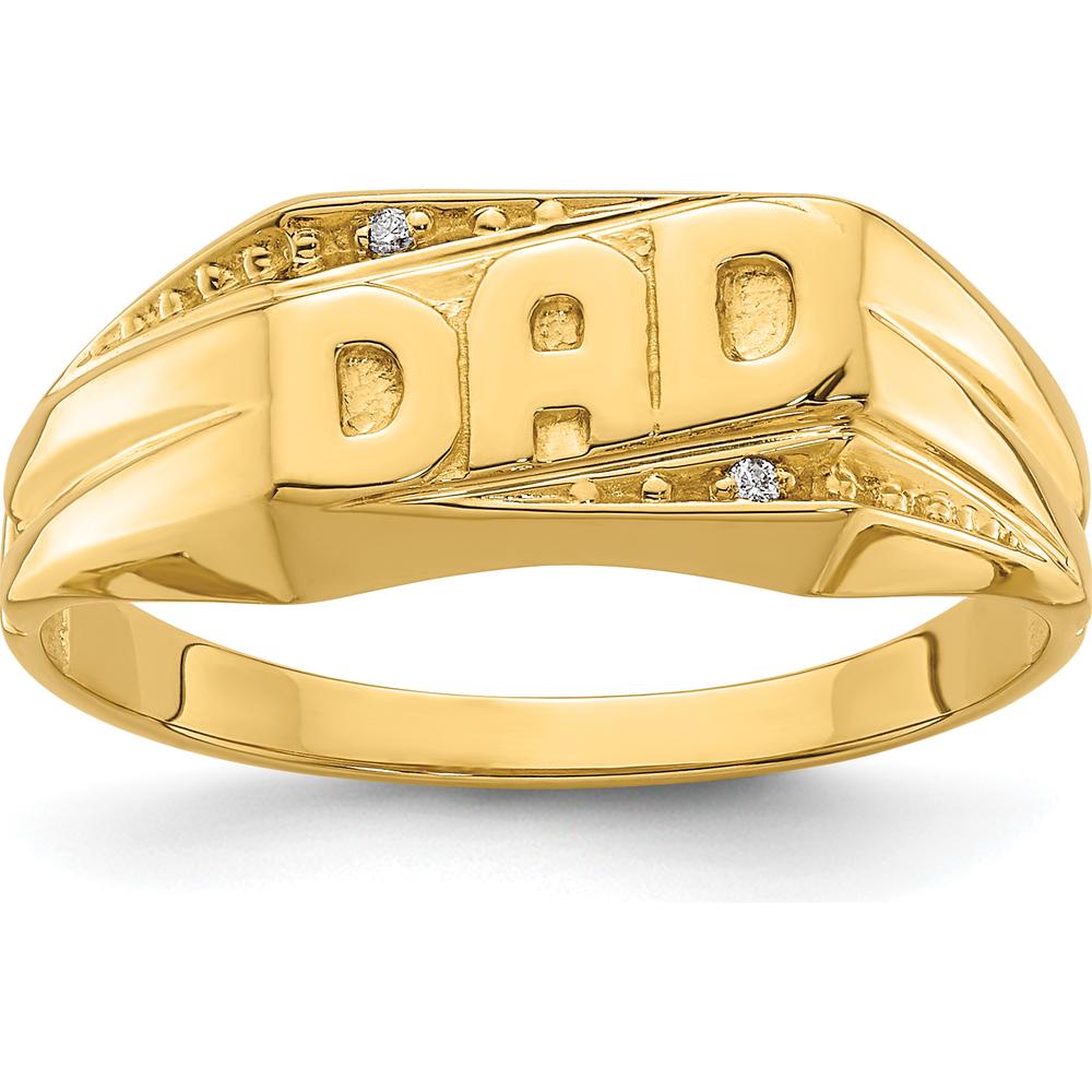 14K Yellow Gold Men's "DAD" Ring with Round Diamonds - 0.004 Carat Total Diamond Weight - Size 10 by IBGoodman
