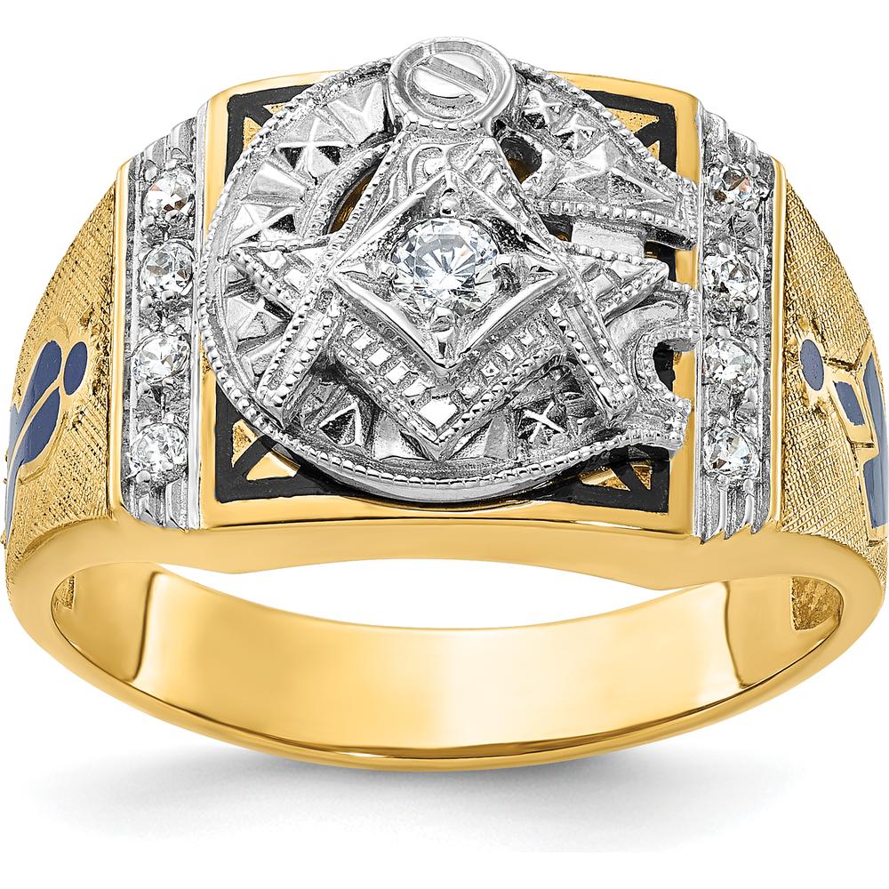 14K Yellow Gold Men's Masonic Ring with Round White Diamonds - 0.15 Carats Total Diamond Weight by IBGoodman