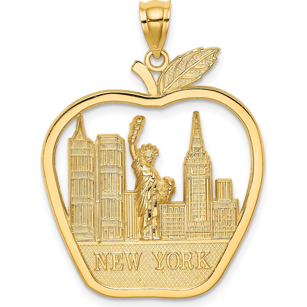 The smooth texture of the polished 14K yellow gold adds a sophisticated finish to this meaningful piece, ensuring it catches the light in every direction. With its careful casted design, every detail—from the delicate leaf atop the apple to the well-defined buildings—speaks of craftsmanship and devotion. The charm measures 29.9mm in length and 26.05mm in width, making it a statement piece that won't go unnoticed. Whether you’re gifting this to a loved one or treating yourself, the charm adds a personal touch, connecting your style with the pride of New York.