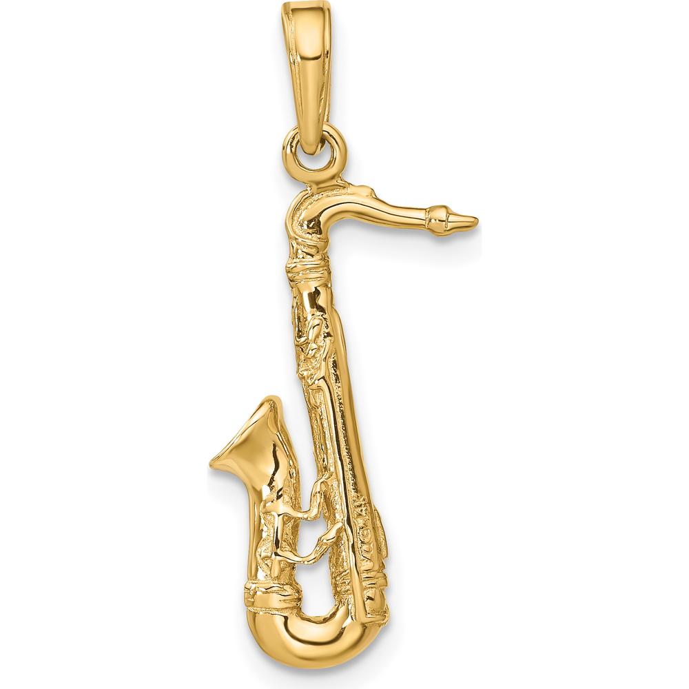 14K Yellow Gold Polished 3D Saxophone Charm - Musician's Jewelry by Oro Pregiato