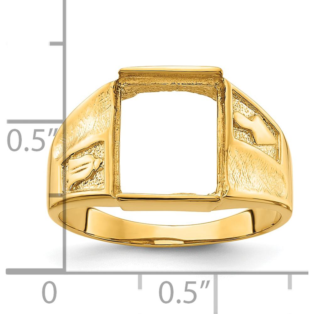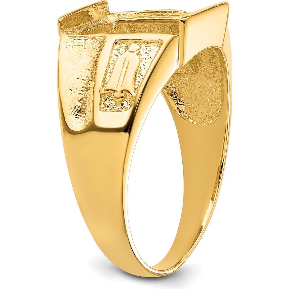 14K Yellow Gold Polished and Textured Masonic Ring Mounting for 12x10mm Rectangular Stone - Size 10 by Monteluci Fine Jewelry