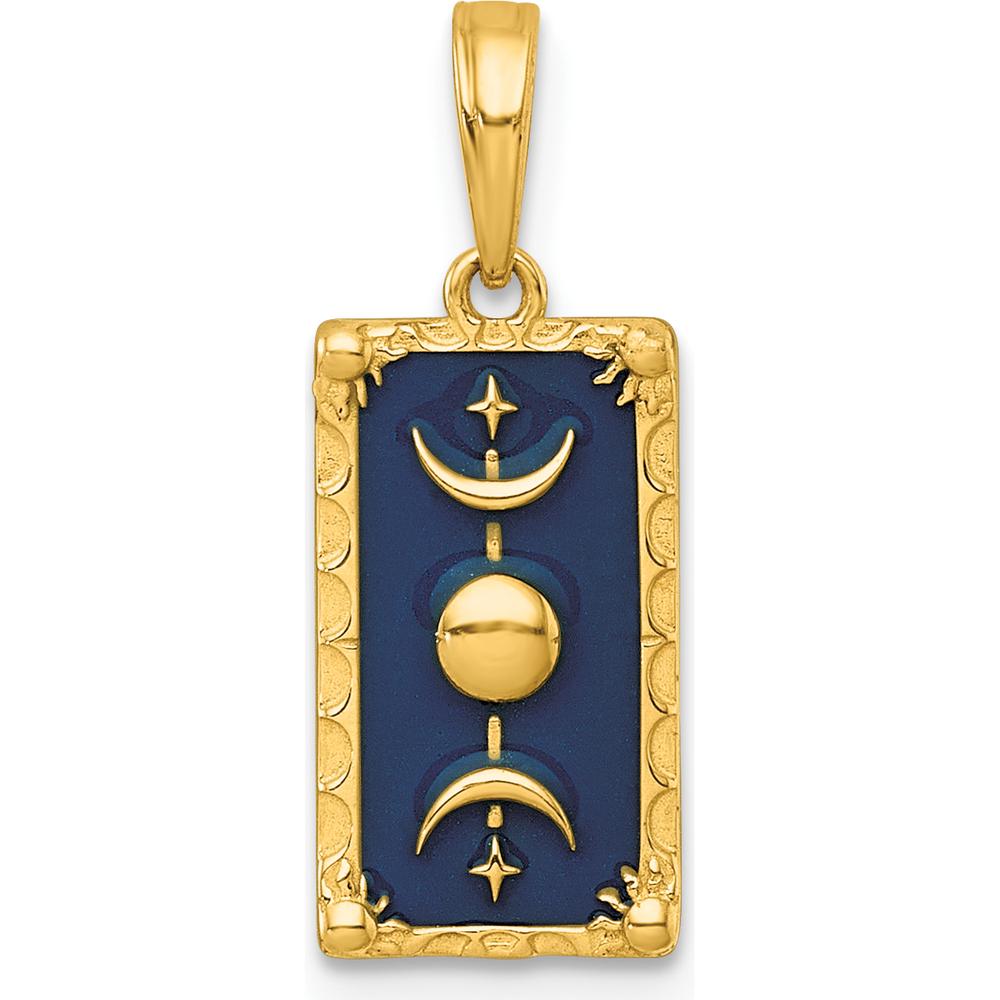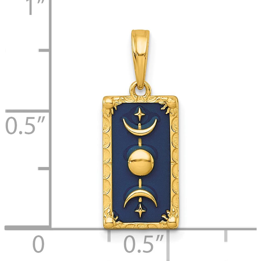 14K Yellow Gold Polished Blue Enamel Moon Cycle Charm - Celestial Design by Oro Pregiato