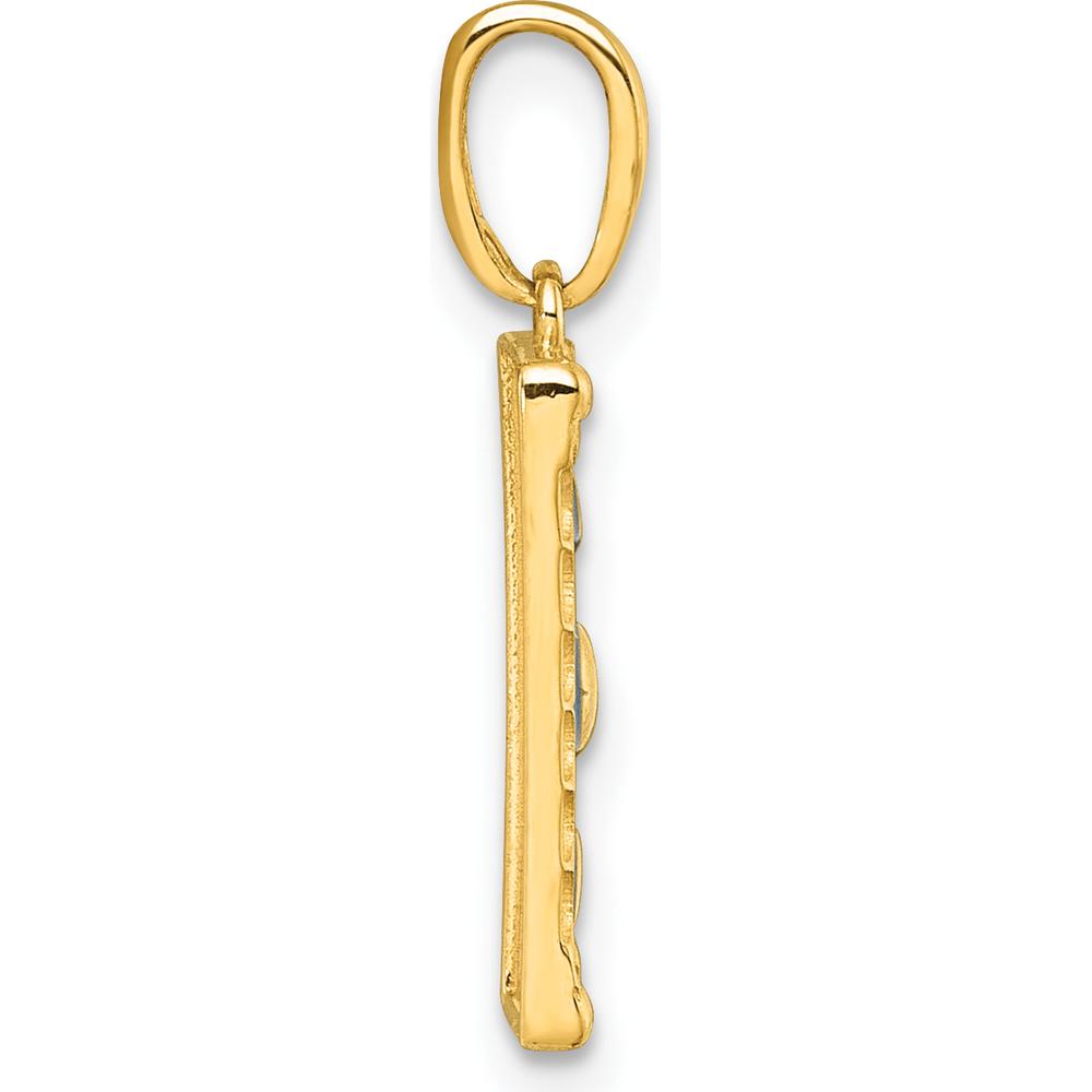At a length of 21.35 mm and a width of 8.49 mm, this piece is perfectly sized to make an impression, yet subtle enough to be a daily wear. The flat back profile ensures comfort, while the detailed bail allows for easy attachment to your favorite chain, making it a versatile addition to any jewelry collection.