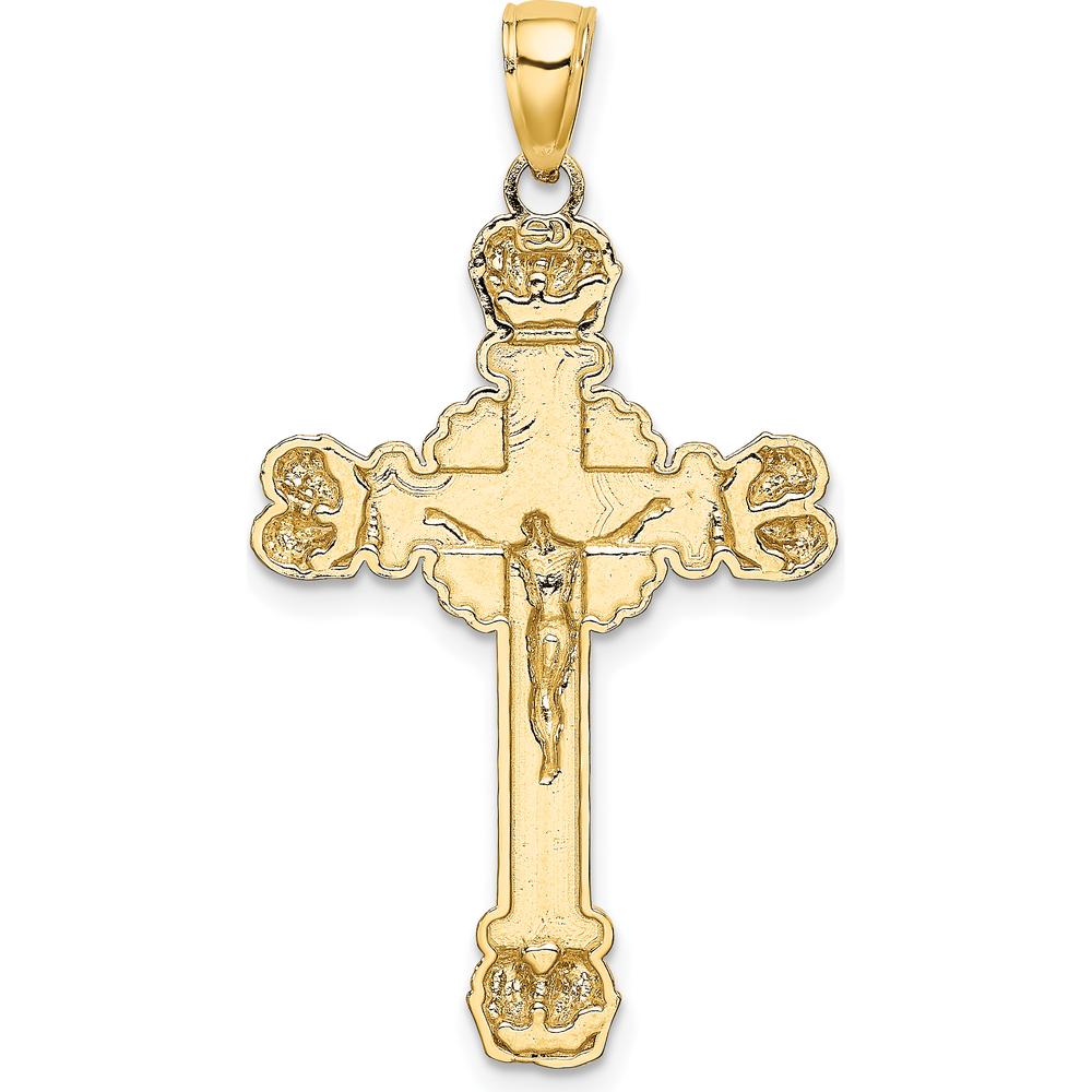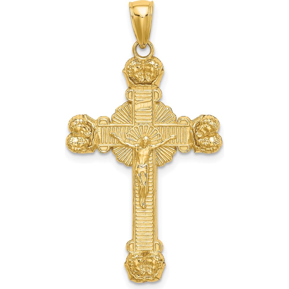 14K Yellow Gold Polished Crucifix with Textured Sunburst Charm - 38mm Length by Oro Pregiato