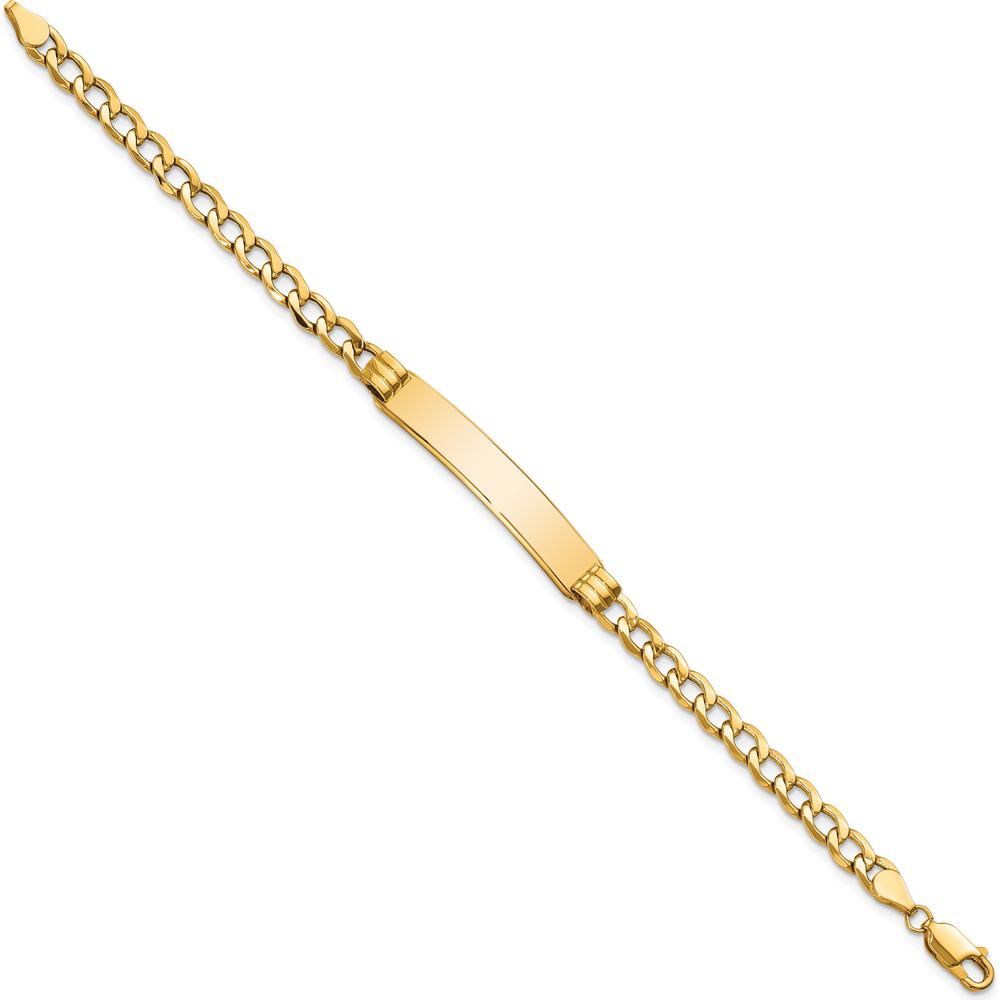 14K Yellow Gold Polished Cuban Link ID Bracelet with Solid Plate - 7” Length by Oro Pregiato