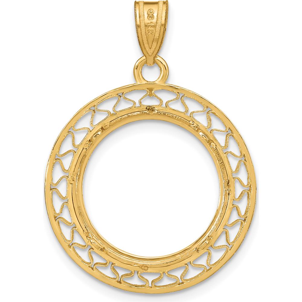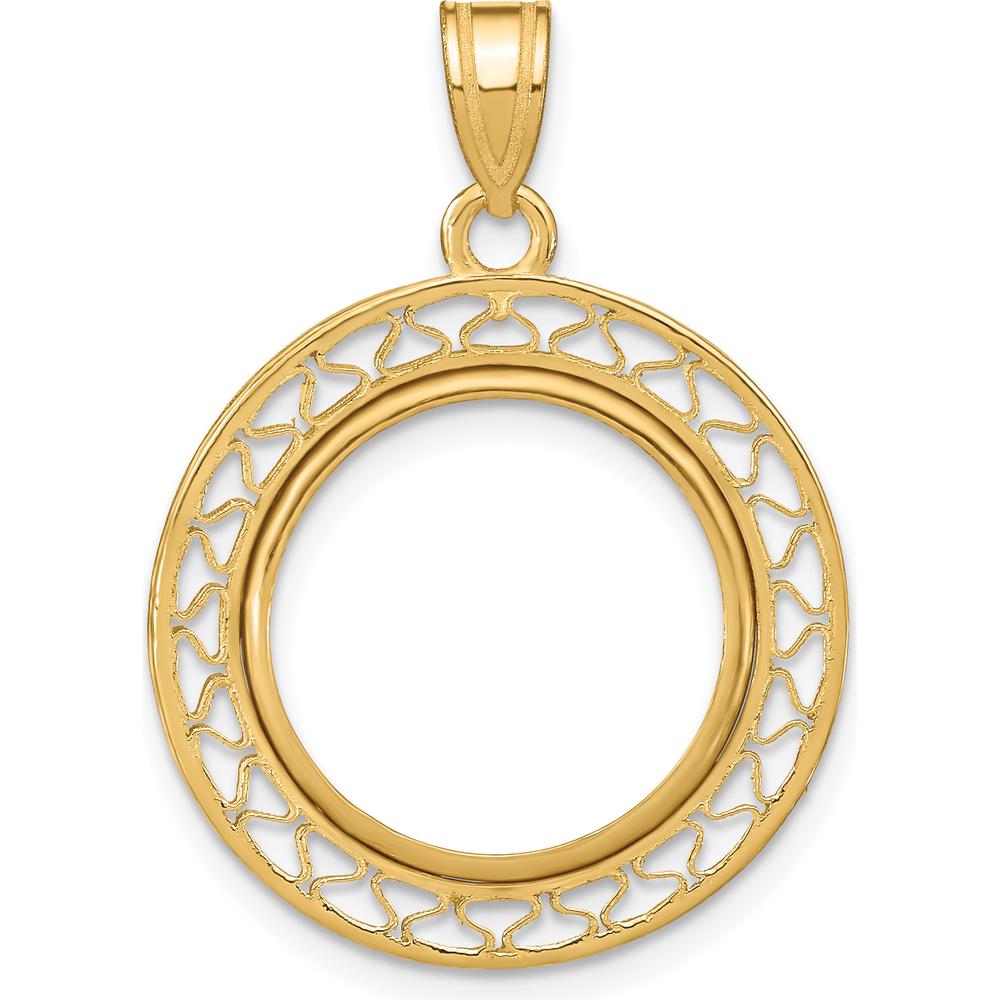 14K Yellow Gold Polished Fancy Wire Coin Bezel Pendant for 1/10 oz. American Eagle Coin by Numis Coin Jewelry