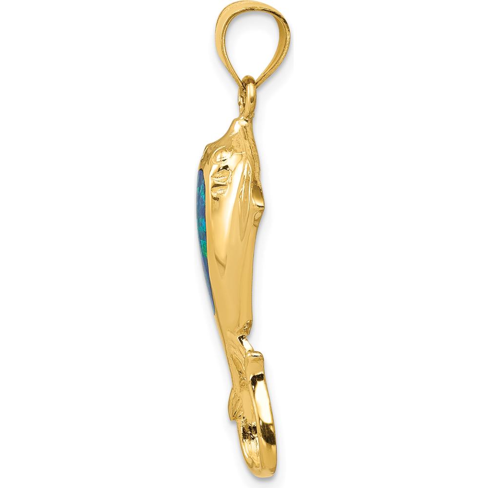 14K Yellow Gold Polished Lab Created Blue Opal Stingray Pendant - Ocean-Inspired Charm by Oro Pregiato