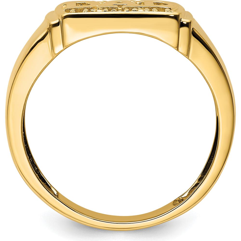 14K Yellow Gold Polished Men's DAD Ring with Side Stone Mountings - Customizable Design - Size 10 by Monteluci Fine Jewelry