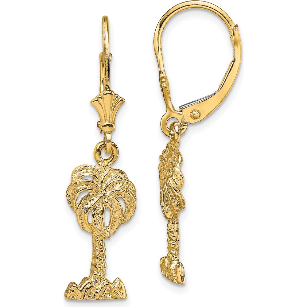 14K Yellow Gold Polished Palm Tree Leverback Drop Earrings by Oro Pregiato