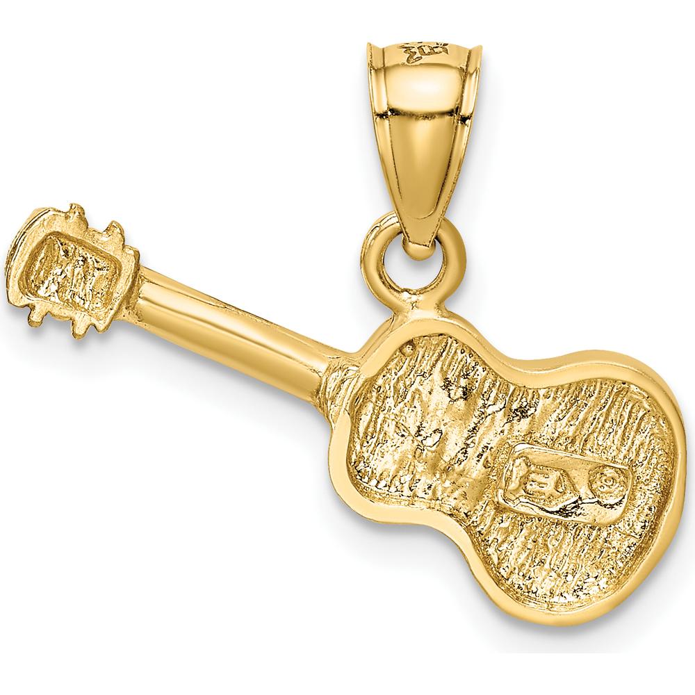 14K Yellow Gold Satin Diamond-Cut Acoustic Guitar Pendant with Brushed Finish by Oro Pregiato