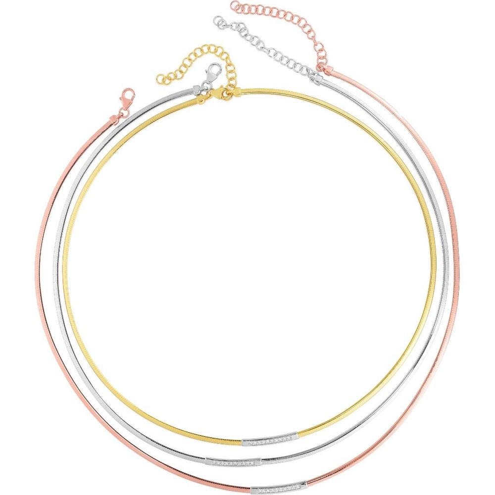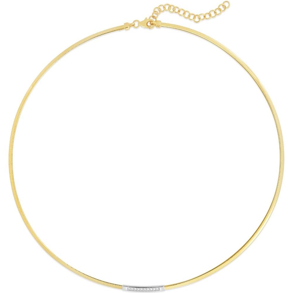 14K Yellow Gold Skinny Omega Necklace with Diamond Bar - 0.08 Carat Total Diamond Weight - 18" with Extender by Orozza Fine Jewelry